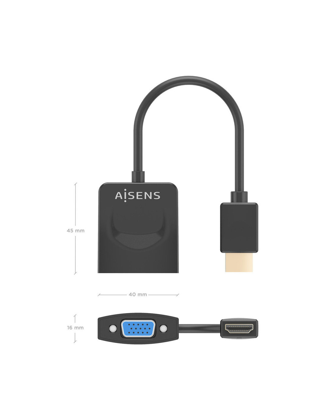 AISENS A122-0947 adaptador de cable de vídeo 0,15 m HDMI Type A (Standard) VGA (D-Sub) Negre