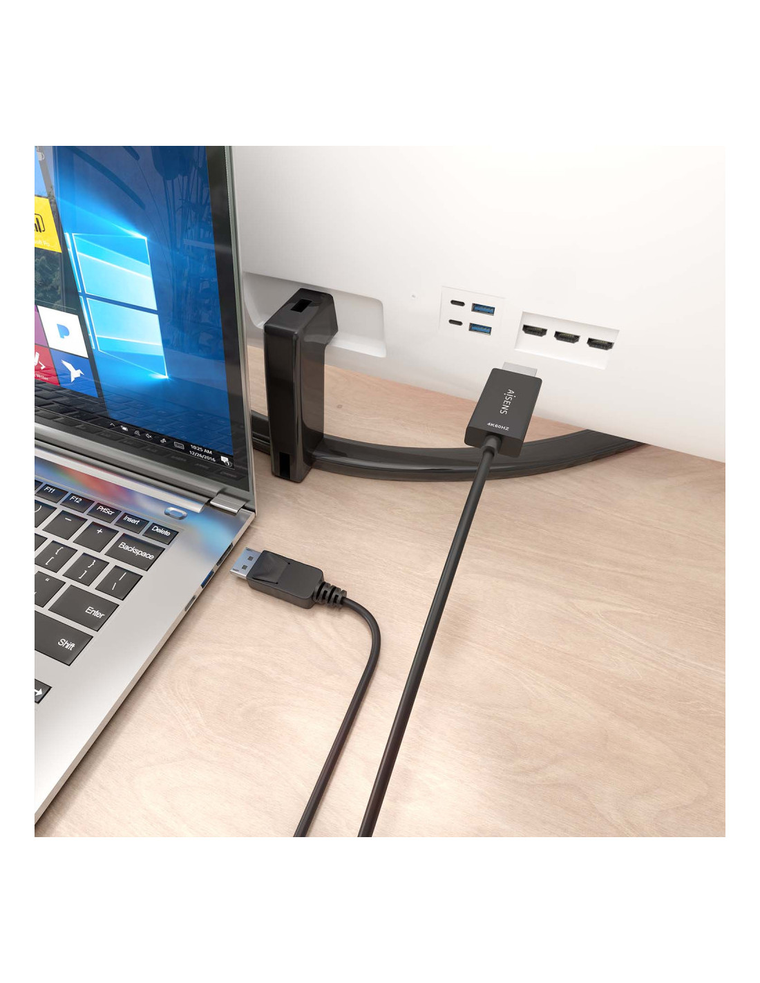 Nota: Este cable es unidireccional: conecta el DisplayPort a dispositivos emisores de señal (como un PC) y el HDMI a dispositivos receptores de señal (como una pantalla o TV). Asegúrate de conectar correctamente cada extremo.