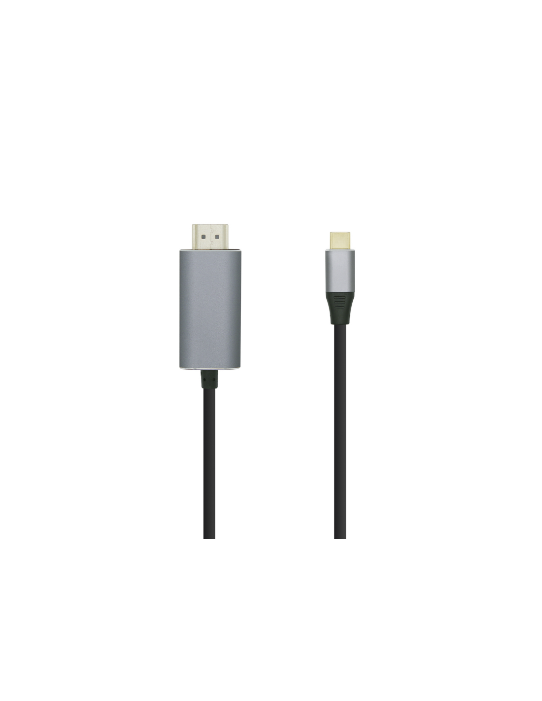 Conversor USB-C a HDMI 2.0, con conector USB-C macho en un extremo y HDMI 4K 2.0 macho en el otro