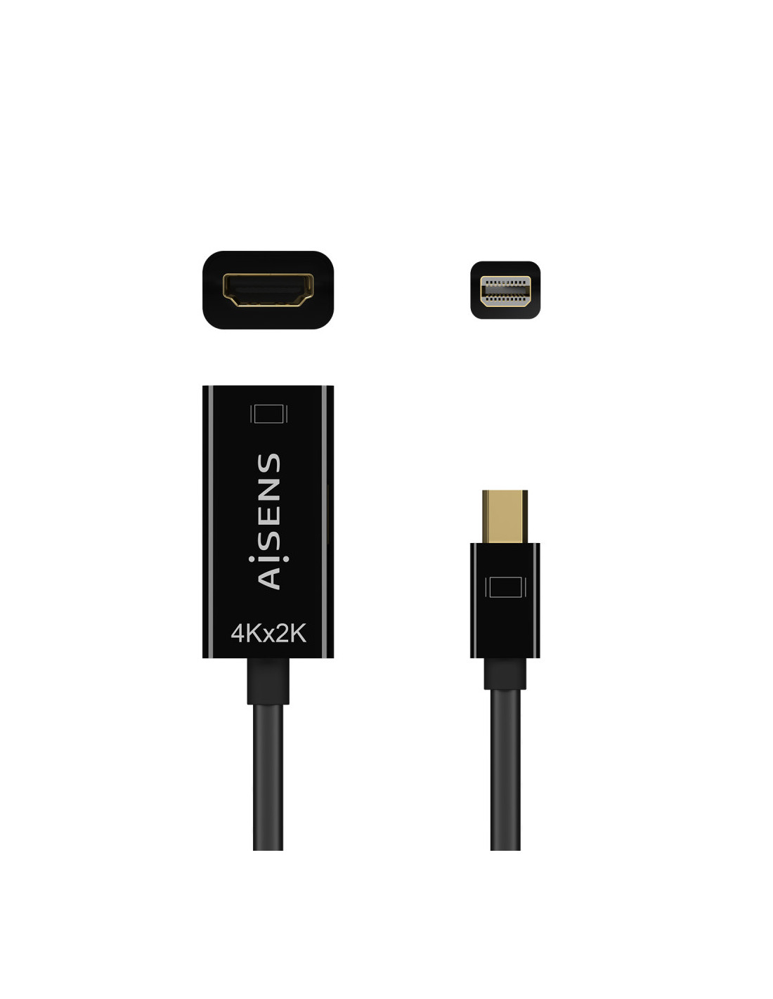 AISENS® – Conversor mini DP a HDMI con conector mini DP (20 Pines) macho en un extremo y HDMI tipo A hembra en el otro.