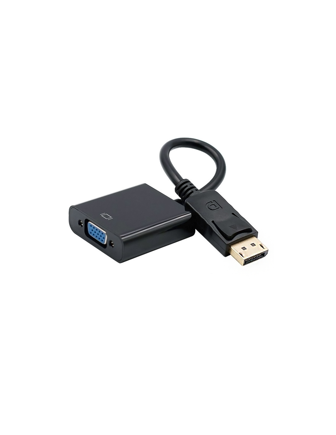 Conversor Displayport a SVGA con conector DISPLAYPORT macho en un extremo y SVGA hdb15 hembra en el otro.