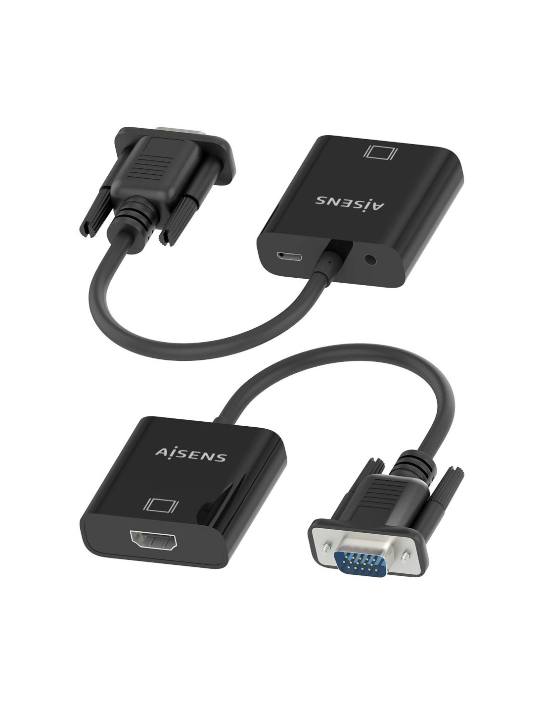 AISENS - Cable conversor SVGA+Audio a HDMI, SVGA/M+Jack 3.5/H+USB MicroB/H-HDMI A/H, Negro, 20cm