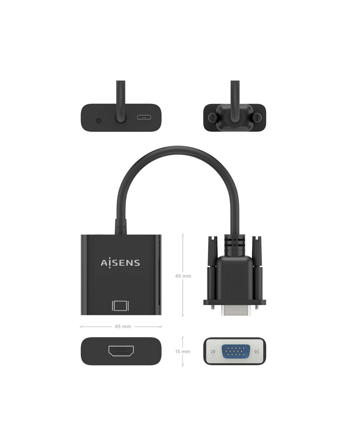 AISENS A115-0873 adaptador de cable de vídeo 0,2 m HDMI + 3.5mm + Micro-USB Type-B VGA (D-Sub) Negre