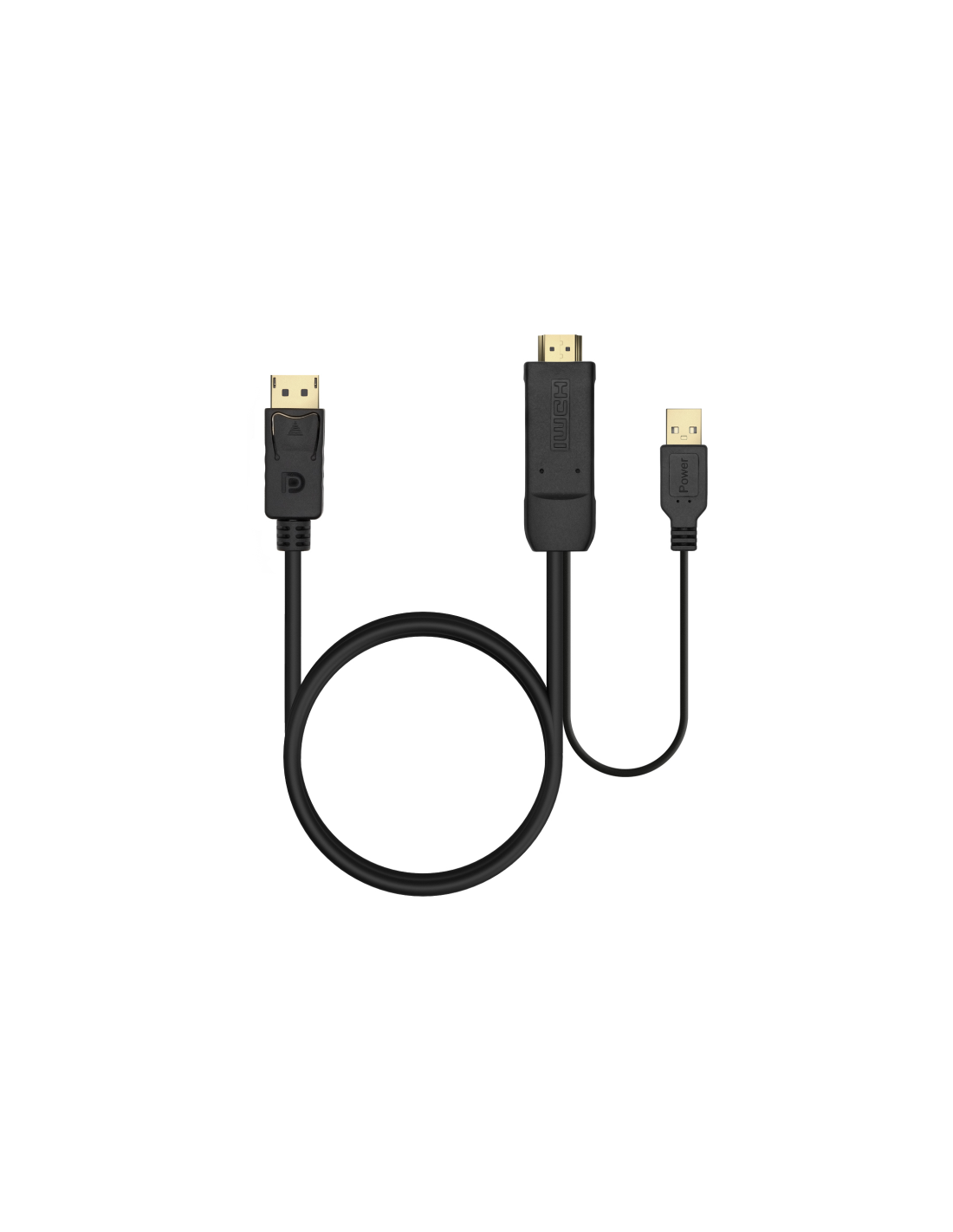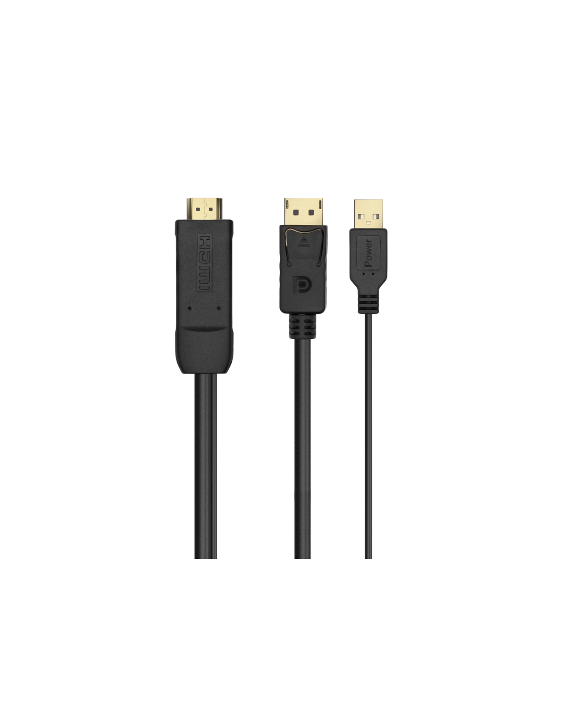 AISENS® – Cable conversor activo HDMI 2.0 a DISPLAYPORT 1.2 con conector HDMI macho, USB alimentación macho en un extremo y DISPLAYPORT macho en el otro.