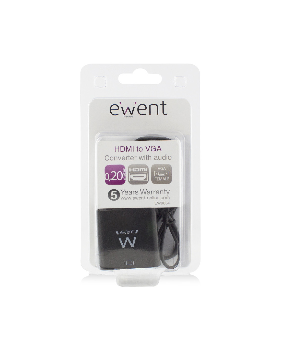 El convertidor HDMI a VGA EW9864 conecta su PC o notebook con una salida HDMI a un monitor o proyector con entrada VGA. La resolución máxima compatible es de 1920x1200 píxeles. Esta resolución es perfecta para vídeo, imágenes, presentaciones, etcétera.