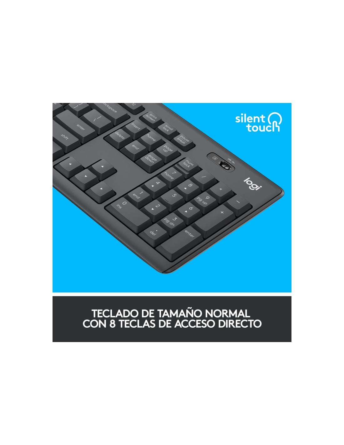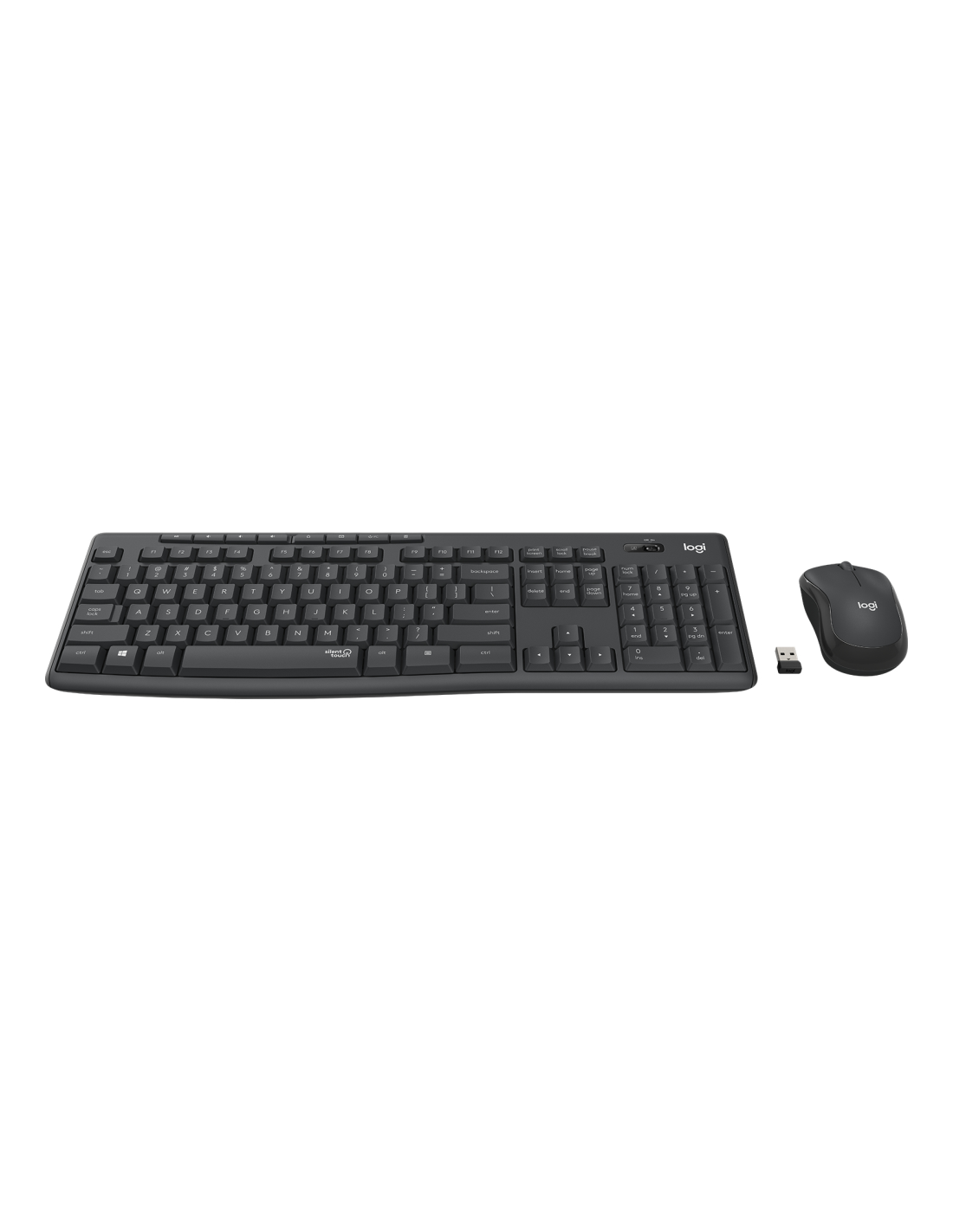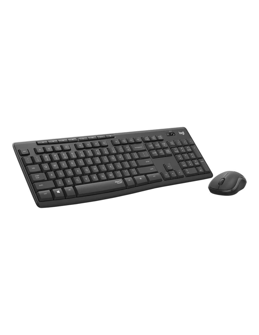 Logitech MK295 Silent. Formato del teclado: Completo (100%). Estilo de teclado: Derecho. Tecnología de conectividad: Alámbrico, Interfaz del dispositivo: RF inalámbrico, Diseño de teclado: QWERTY, Uso recomendado: Oficina. Color del producto: Grafito. Ratón incluido
