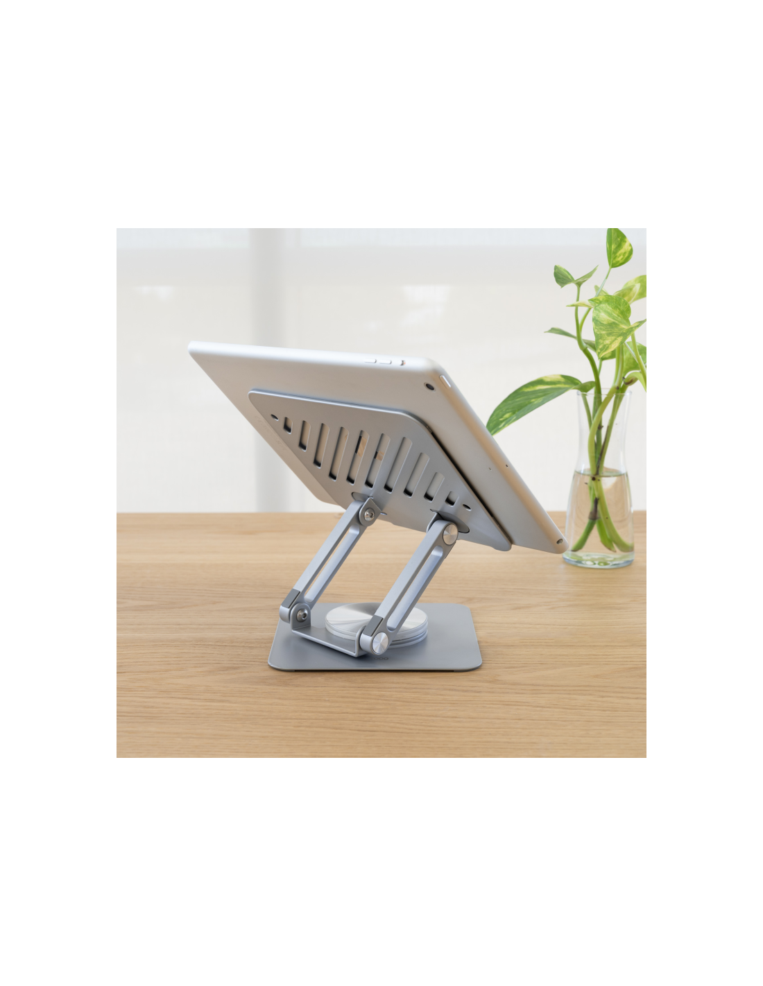 TooQ Soporte de Sobremesa con rotación 360° y ajustable para dispositivos de hasta 13”, Color Plata