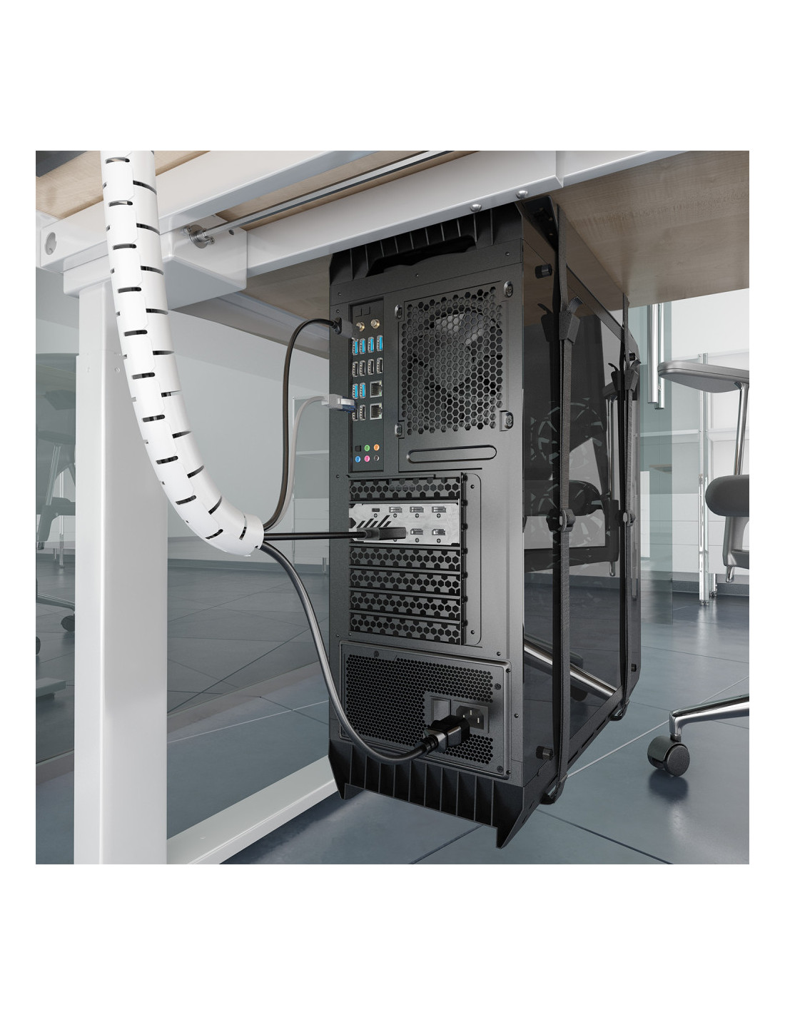 - Organizador de cables en espiral con capacidad de hasta 25mm de diámetro.