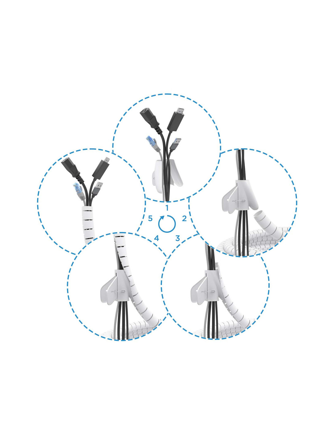- Organizador de cables en espiral con capacidad de hasta 25mm de diámetro.