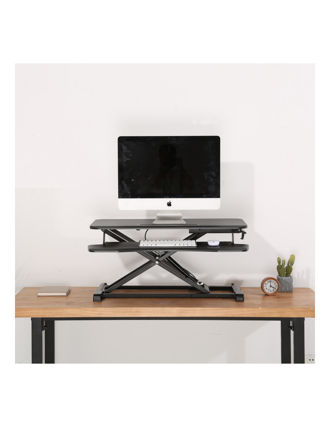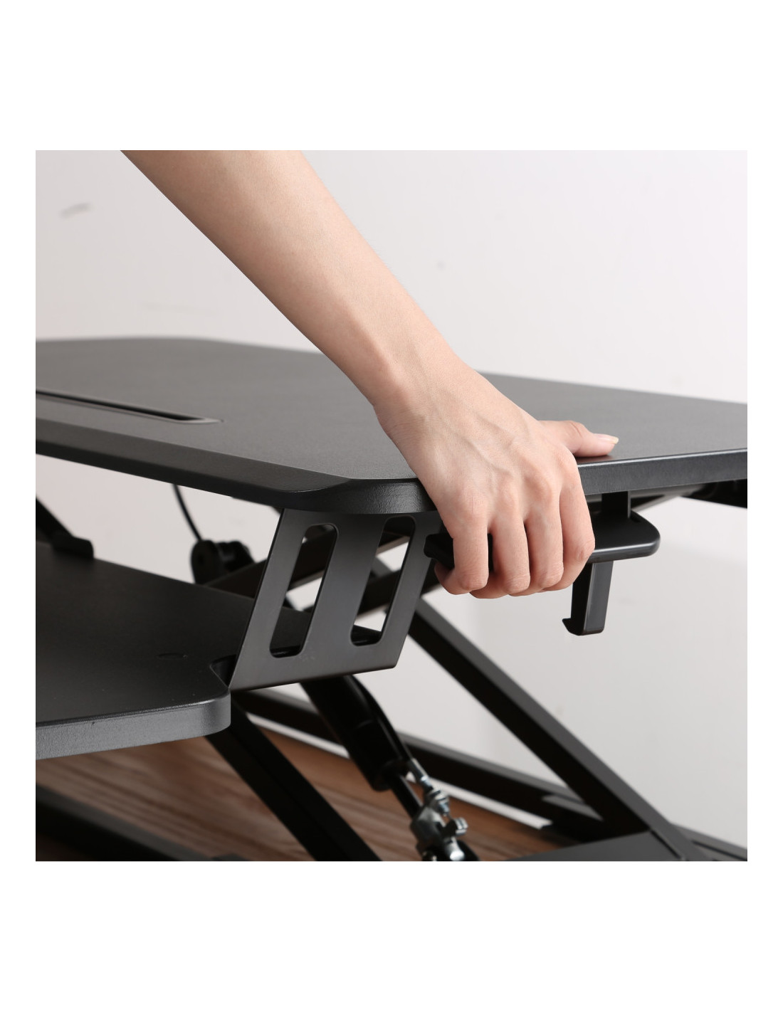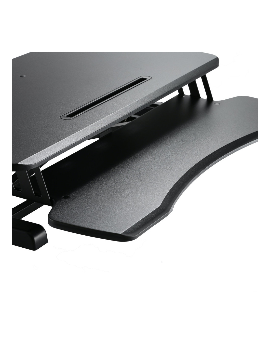 Con la estación de trabajo Ewent EW1545 puede crear su propio espacio de trabajo ergonómico personal. Puede elevar el soporte de entre 10 y 50 cm. Gracias a la gran superficie de 80x40 cm, incluso puede colocar hasta 2 monitores. El EW1545 incluye una gran bandeja para teclado y mouse y un soporte para tableta y teléfono inteligente. ¡Disfruta de tu nueva estación de trabajo!