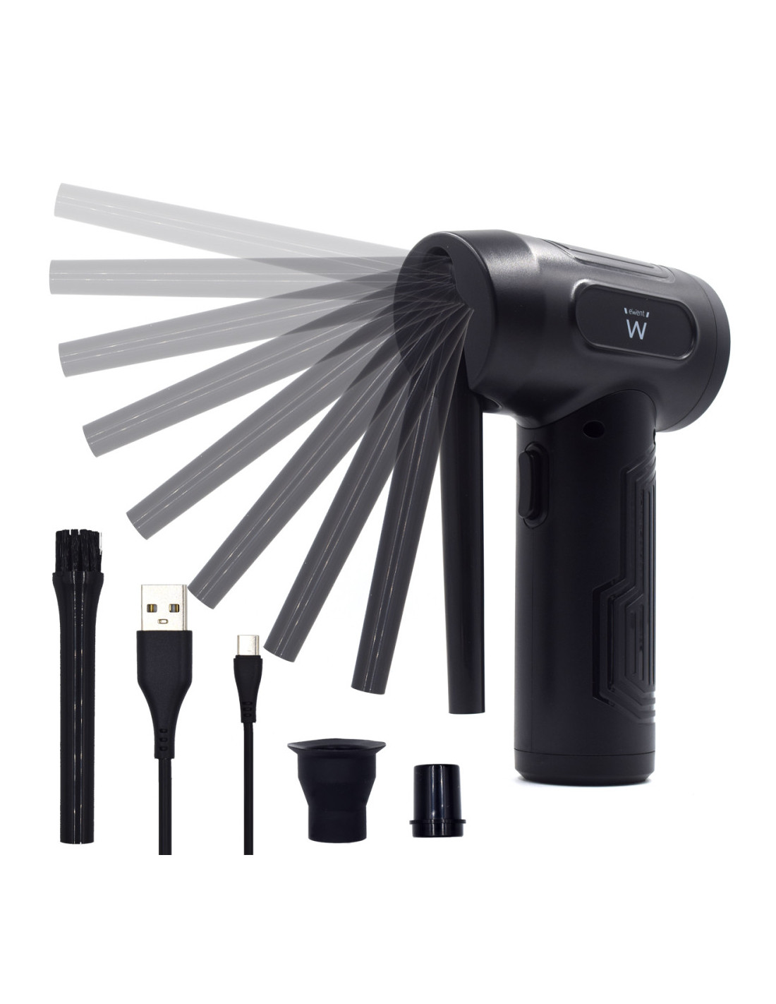 El soplador de aire EWENT EW5607, está especialmente diseñado para utilizarse en diferentes dispositivos electrónicos para su limpieza y eliminación de polvo. Limpia el polvo de tu teclado, ordenador, etc, de una forma rápida y cómoda. A parte del uso cotidiano en el hogar, oficinas, coche, etc, está recomendado especialmente también para el uso en los servicios técnicos de componentes electrónico. Al ser aire soplado mecánicamente, no emite humedad, impidiendo que los objetos o dispositivos donde se use puedan deteriorarse.