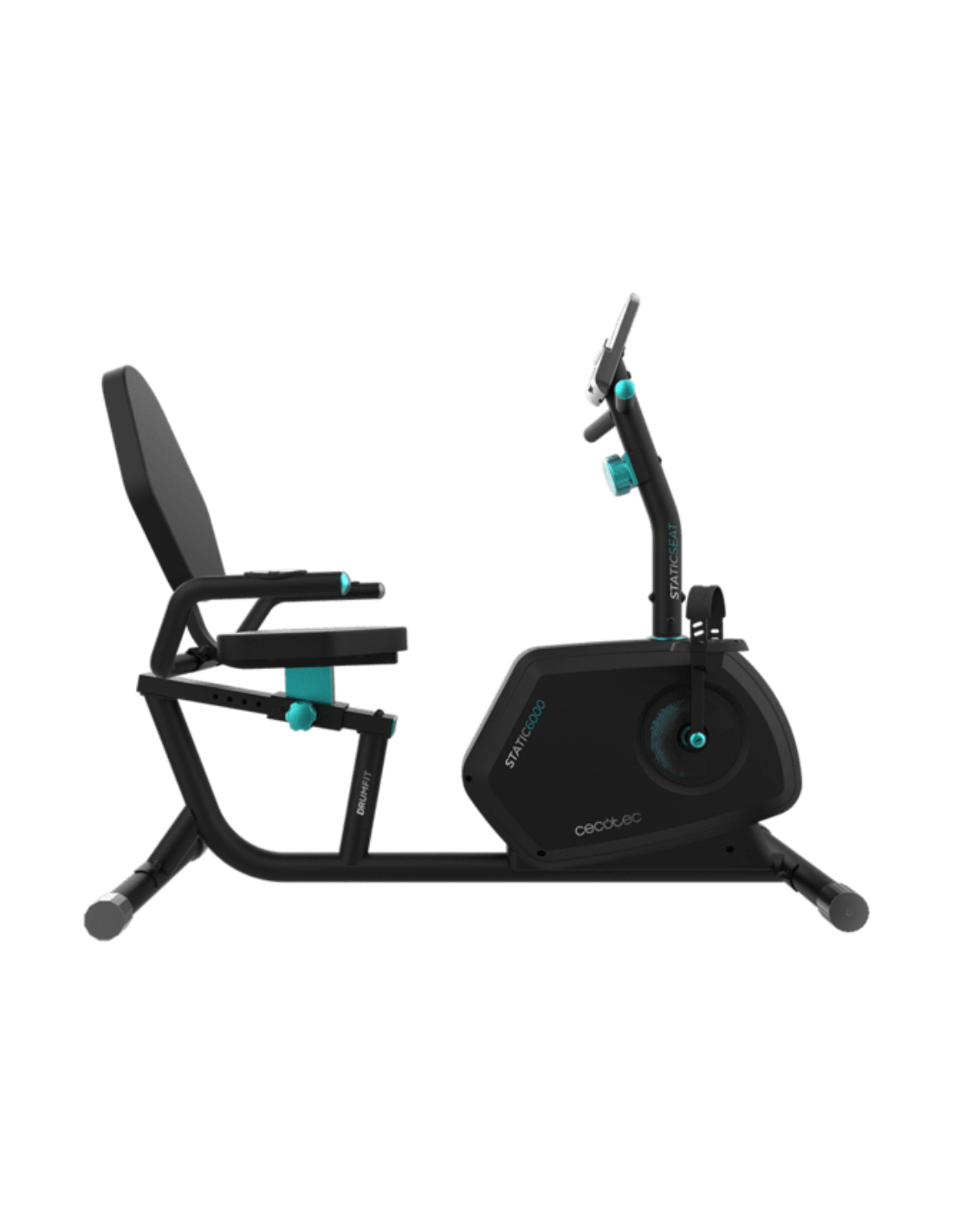 DrumFit Static 6000 Seat Bicicleta estática reclinable con 8 niveles de resistencia magnética. Volante de inercia de 6 kg. Pantalla LCD. Pulsómetro. Soporte para dispositivos. Ruedas de transporte. Peso máximo de 120 kg y altura máxima 190 cm.