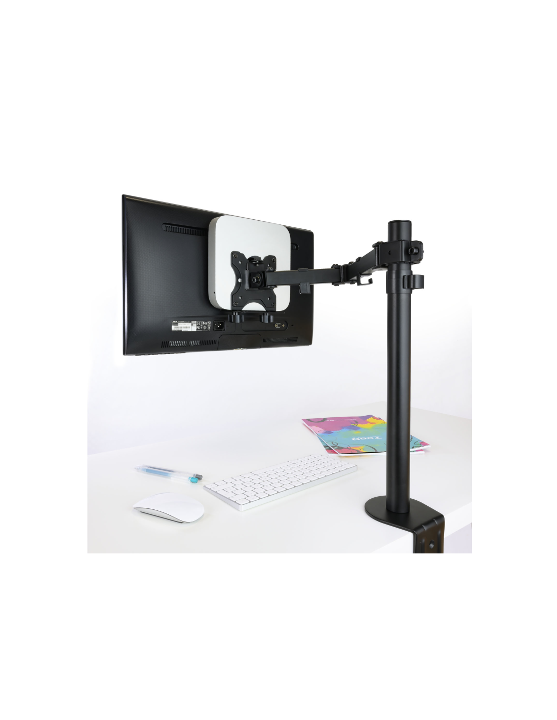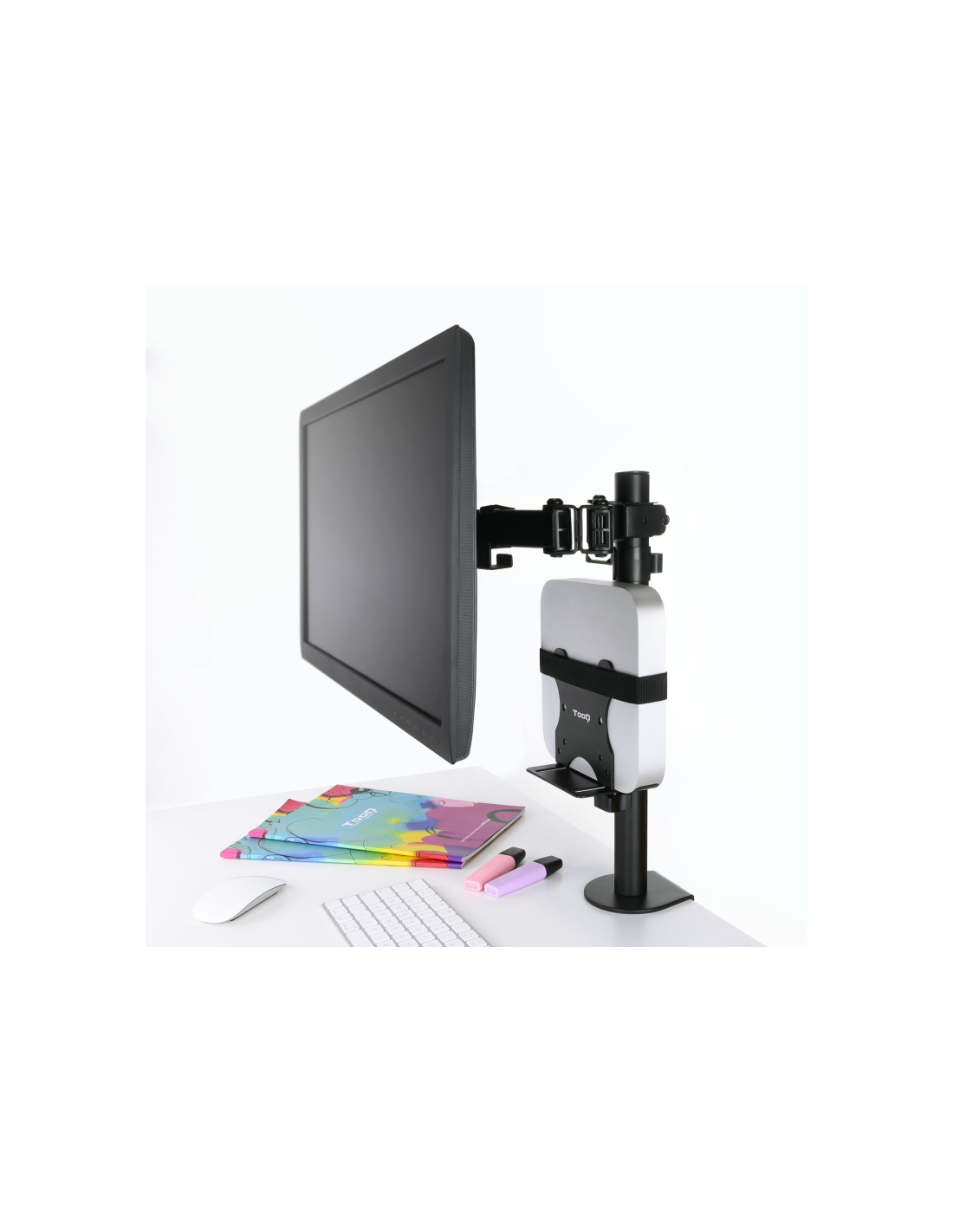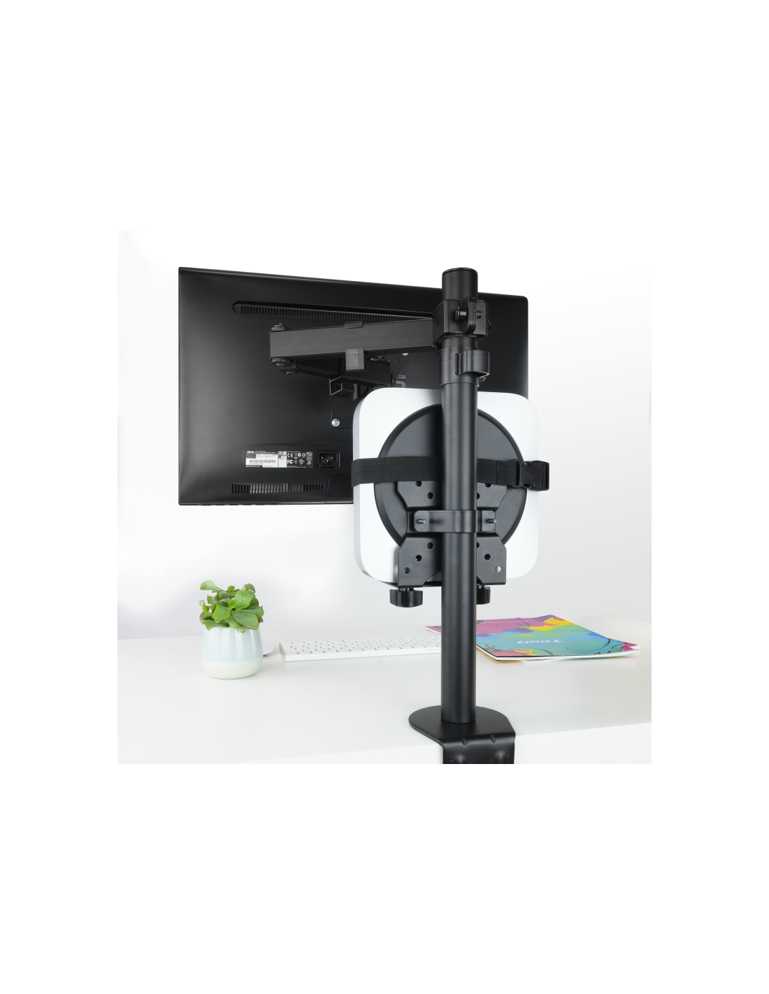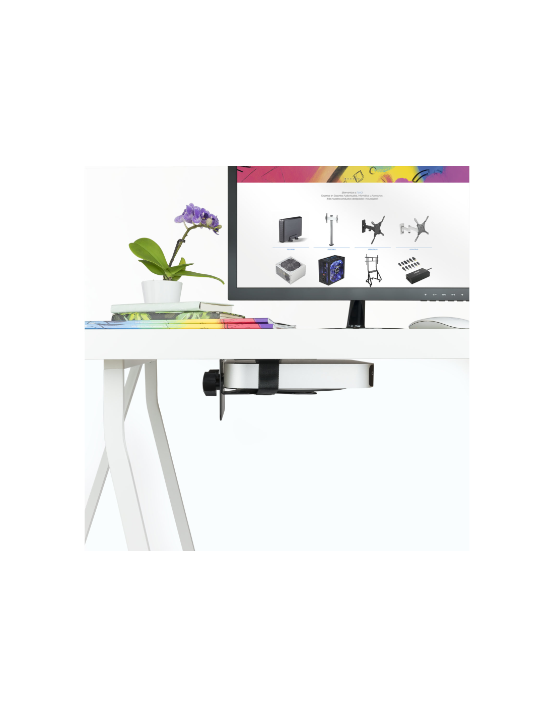 Nuestro soporte te permitira proteger y mantener ordenado tu estación de trabajo y ocio. Puedes acoplar tu mini PC al mástil de un soporte, atornillarlo al escritorio o acoplarlo a la parte posterior de un monitor, con o sin soporte.