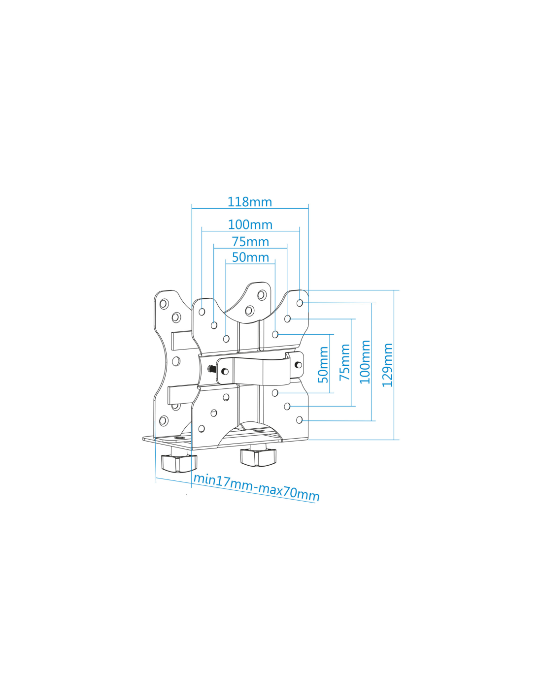 TooQ TCCH0001-B. Capacidad máxima de peso: 5 kg, Compatibilidad con interfaz de montaje (min): 50 x 50 mm, Compatibilidad con interfaz de montaje (max): 100 x 100 mm. Color del producto: Negro. Ancho: 118 mm, Profundidad: 85 mm, Altura: 129 mm