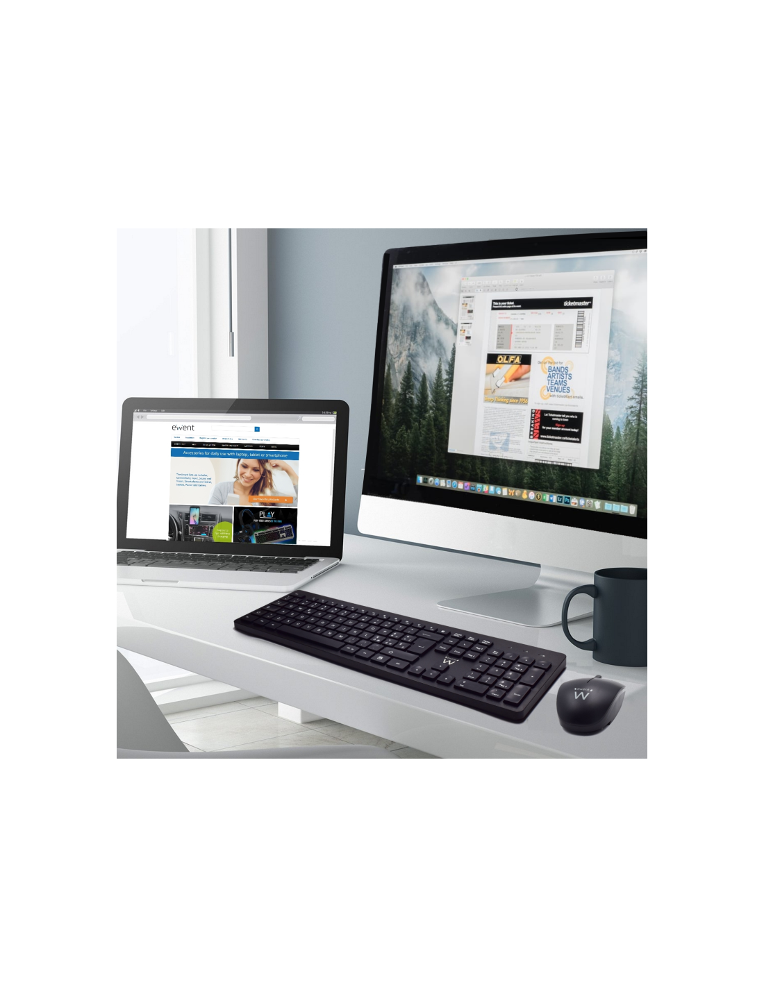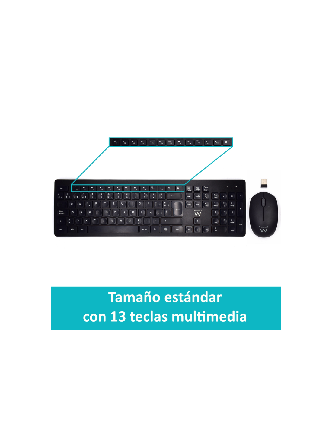 Ewent EW3256. Formato del teclado: Completo (100%). Estilo de teclado: Derecho. Tecnología de conectividad: Inalámbrico, Interfaz del dispositivo: RF inalámbrico, Interruptor del teclado: Interruptor de membrana, Diseño de teclado: QWERTY, Uso recomendado: Universal. Color del producto: Negro. Ratón incluido