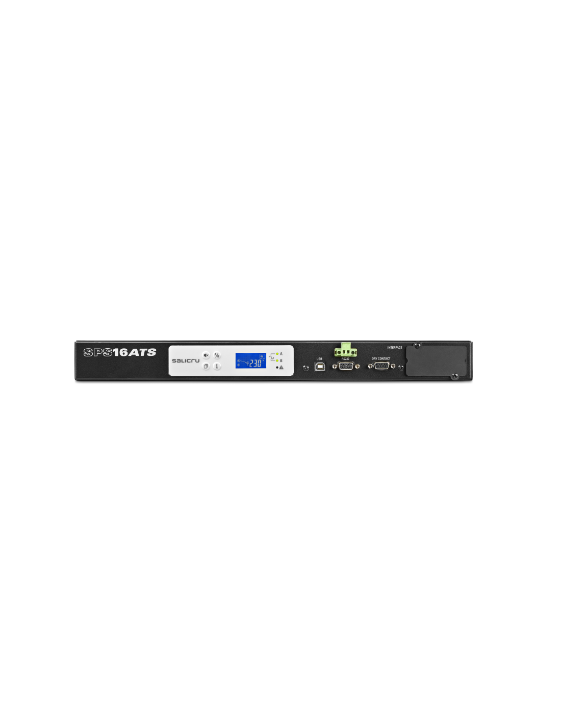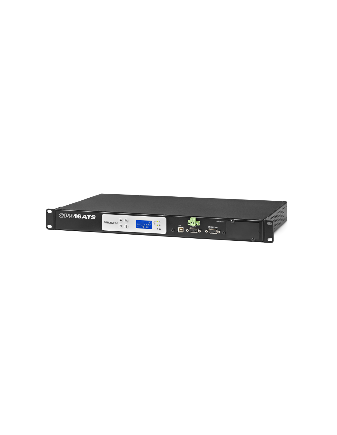 La serie SPS ATS de Salicru es un conmutador automático entre dos líneas de alimentación monofásica AC que, partiendo de dos líneas de energía de corriente senoidal, suministra tensión de salida a la/s carga/s. La conmutación puede ser automática o manual. El display LCD junto a los LEDs de estado informan en todo momento del estado del equipo, modo de trabajo y de los valores de las principales medidas. Dispone de amplias posibilidades de comunicación mediante los interfaces USB, RS-232 y contactos libres de potencial incorporados, o la inclusión -opcional- en una plataforma SNMP. Asimismo, mediante el software de parametrización disponible se pueden programar parámetros como retardos, nivel de sobrecarga, márgenes de tensión y frecuencia, sensibilidad de línea, programación de los contactos libres de potencial, etc.