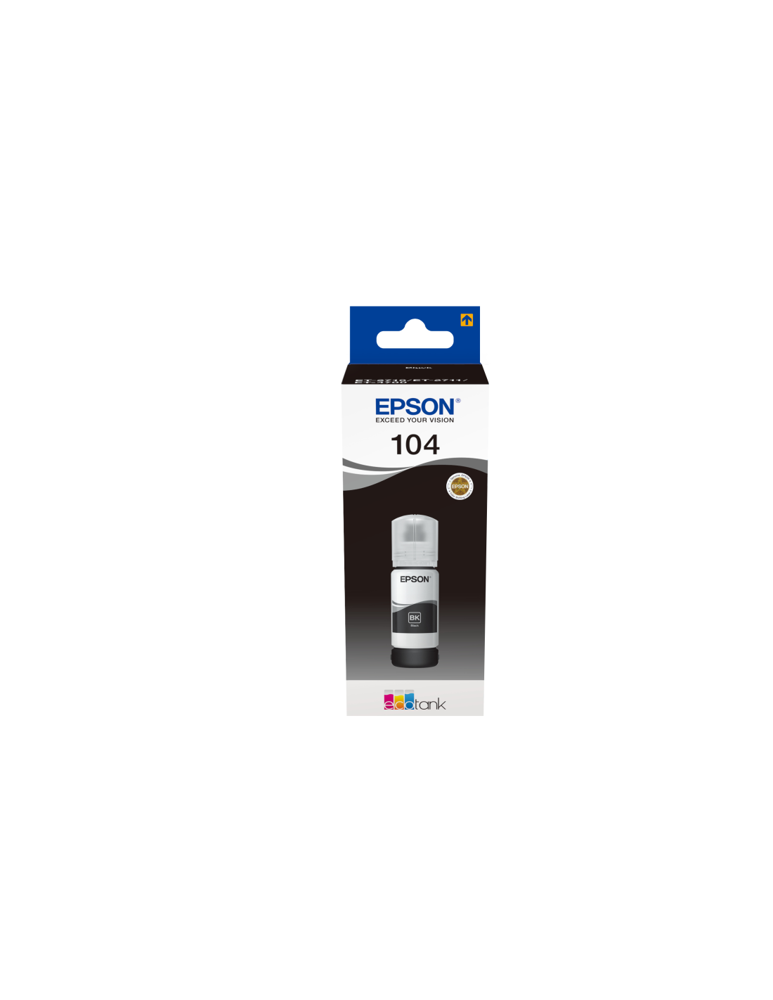 Epson 104 EcoTank Black ink bottle. Tipo: Original, Colores de impresión: Negro, Marca compatible: Epson. Cantidad por paquete: 1 pieza(s), Ancho del paquete: 58 mm, Profundidad del paquete: 178 mm. Peso del envase completo: 3,12 kg, Longitud de la caja: 480 mm, Ancho de la caja principal: 310 mm