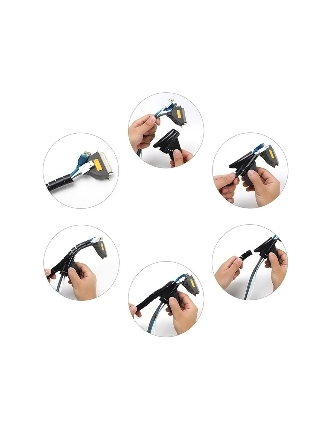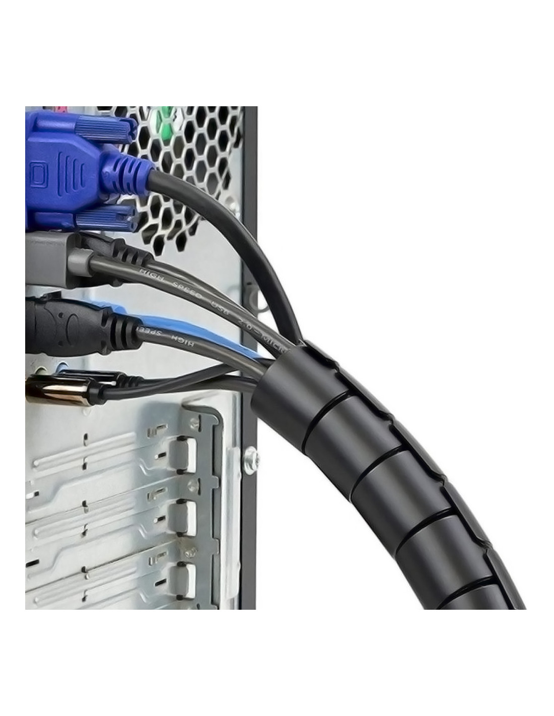 Organizador de cables en espiral con capacidad de hasta 25mm de diámetro.