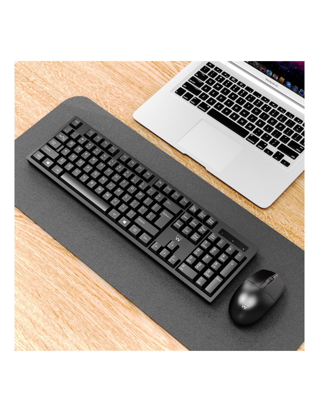 El EW3281 es un Kit Teclado y Mouse inalámbricos que contiene un teclado sólido de tamaño completo y un mouse de 1000 DPI. El teclado está equipado con teclas programables y patas de inclinación ajustables. El mouse tiene un receptor nano USB, botones izquierdo y derecho y rueda de desplazamiento. Tanto el teclado como el mouse tienen un sistema inteligente de ahorro de energía para extender la vida útil de las baterías. El nanorreceptor USB-A 2 en 1 se almacena en la parte inferior del mouse.