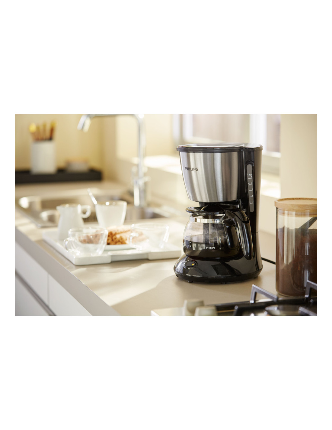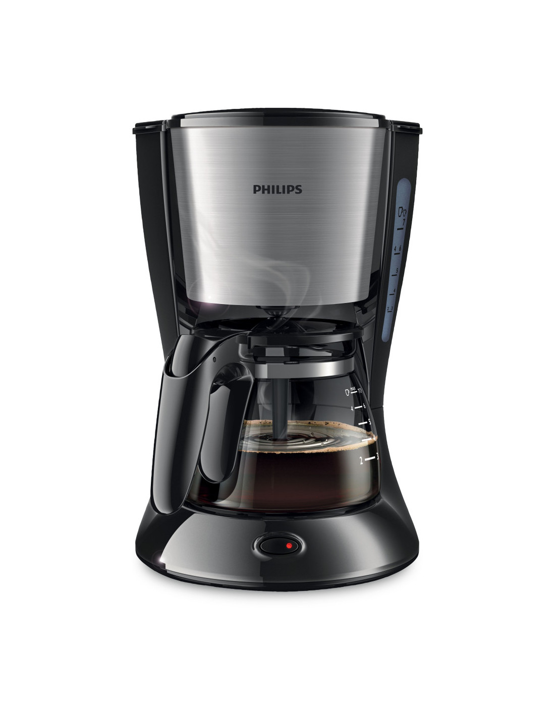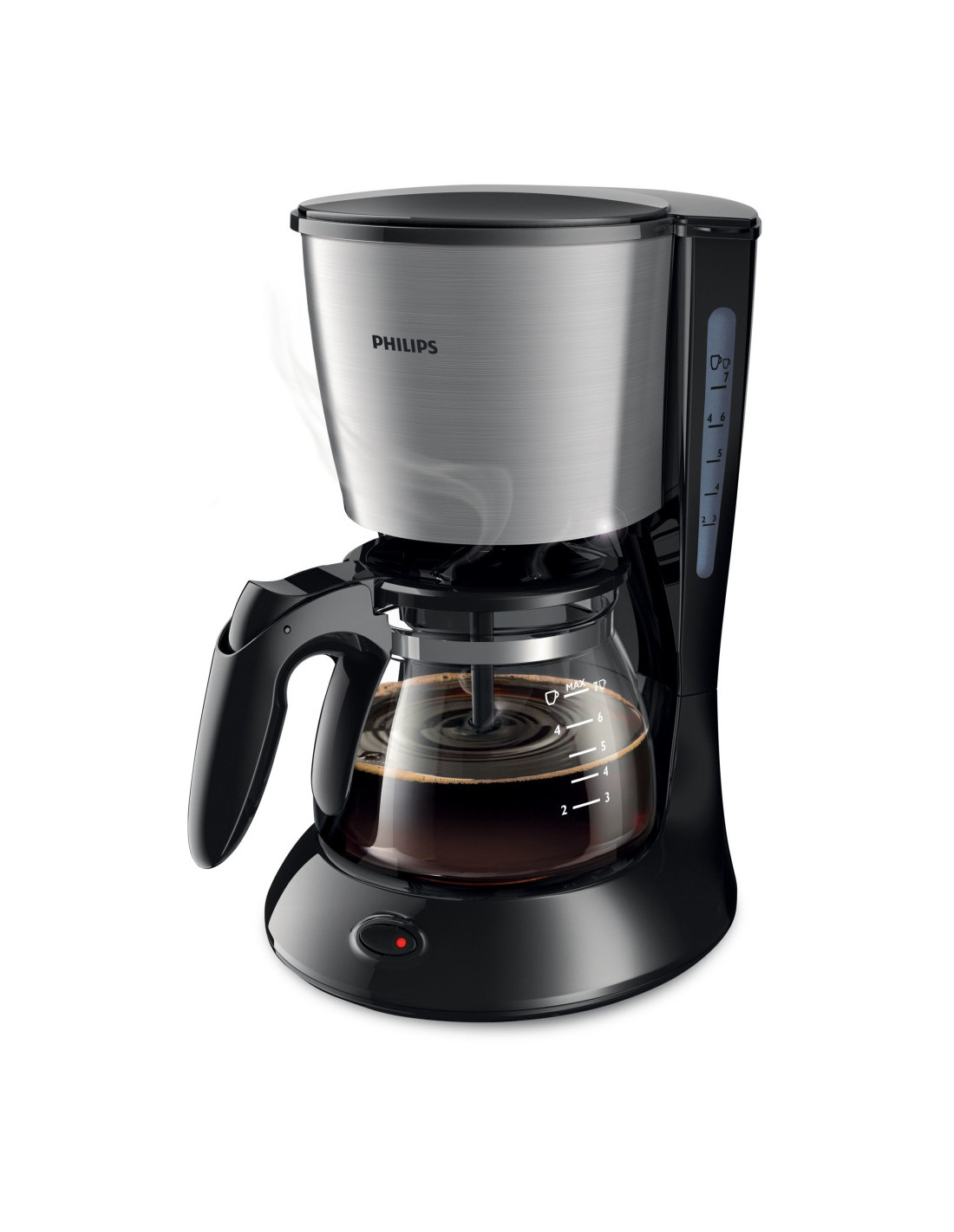 Disfruta del sabor y el aroma del café recién hecho con la cafetera Philips. Su diseño compacto es perfecto para preparar de 2 a 7 tazas. Gracias a la espiral Aroma, disfrutarás del mejor sabor en cada taza.