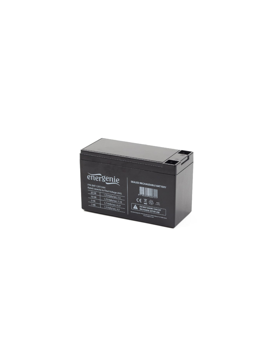 Gembird BAT-12V7.5AH. Voltaje de la pila: 12 V, Número de baterías incluidas: 1 pieza(s), Color del producto: Negro. Certificados de conformidad: RoHS. Peso: 2,8 kg, Ancho: 94 mm, Altura: 65 mm. Ancho del paquete: 150 mm, Altura del paquete: 75 mm, Profundidad del paquete: 225 mm