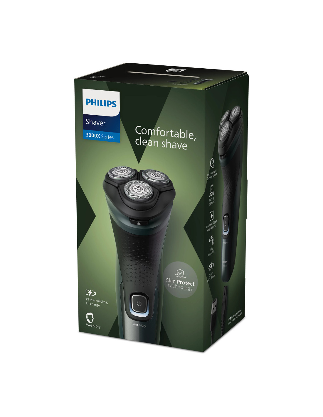 La afeitadora eléctrica Wet & Dry serie 3000X de Philips te ofrece un afeitado cómodo y apurado por una buena relación calidad-precio. Las 27 cuchillas autoafilables PowerCut, su uso en seco y en húmedo y su cortapatillas desplegable hacen que la afeitadora sea fácil de usar y siempre fiable.
