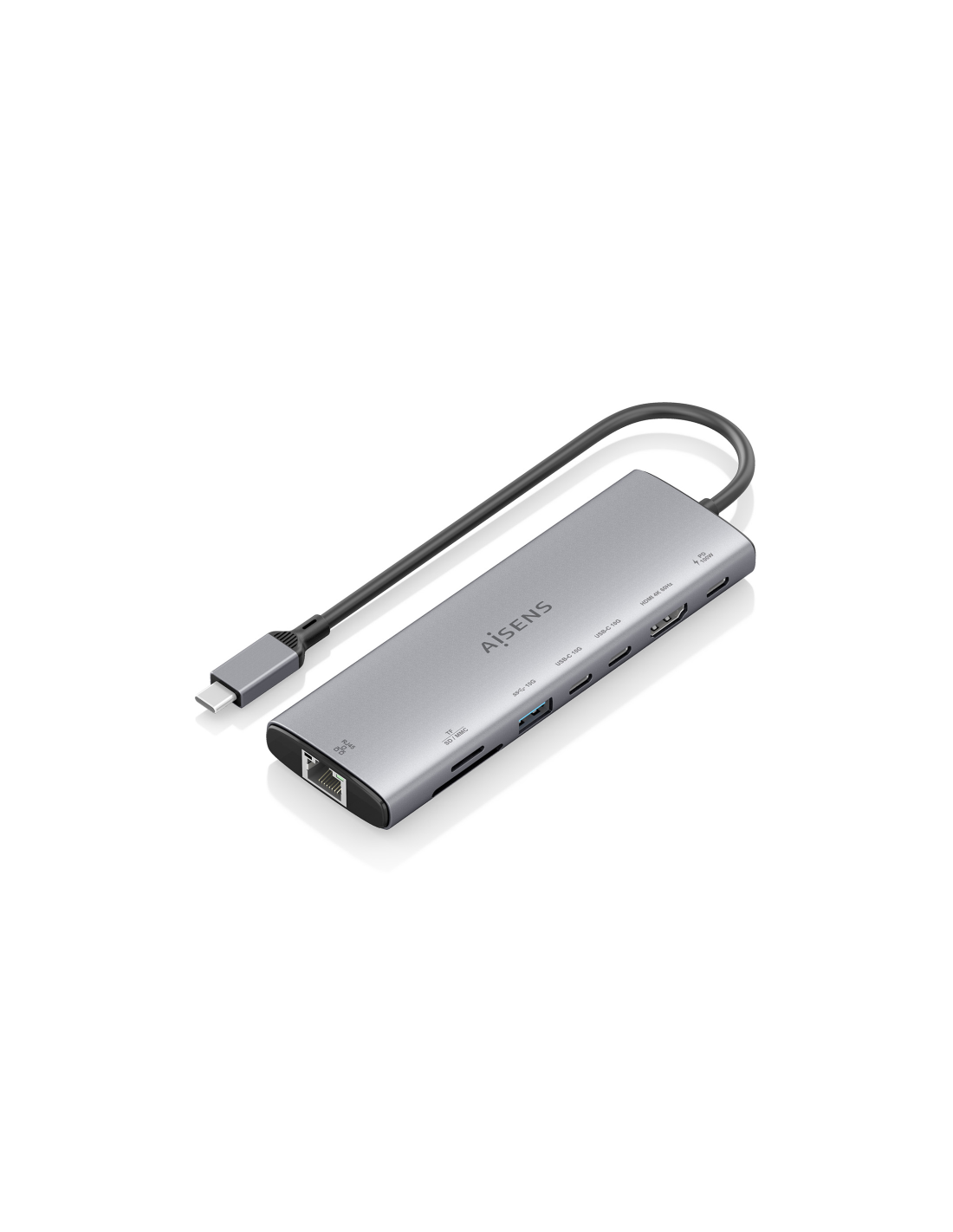 AISENS USB-C Dock 8 en 1, USB-C a 1xHDMI, 1xRJ45, 1xUSB-A 10G, 2xUSB-C 10G, 1xSD, 1xMicroSD, 1xUSB-C PD 100W, Gris, 20cm