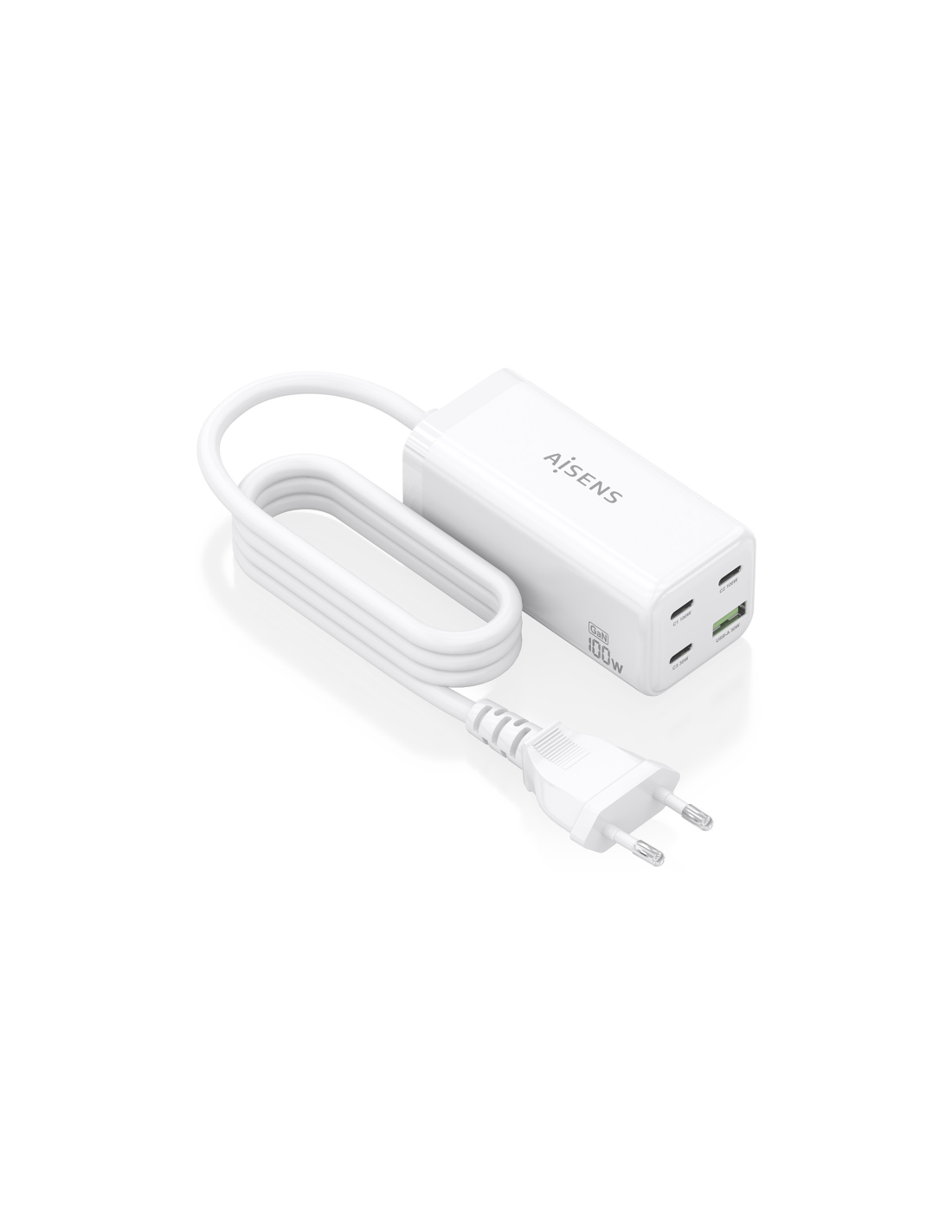 AISENS Cargador Sobremesa GaN 100W, 3x USB-C PD3.0 QC4.0 QC5.0, 1x USB-A QC3.0, Blanco