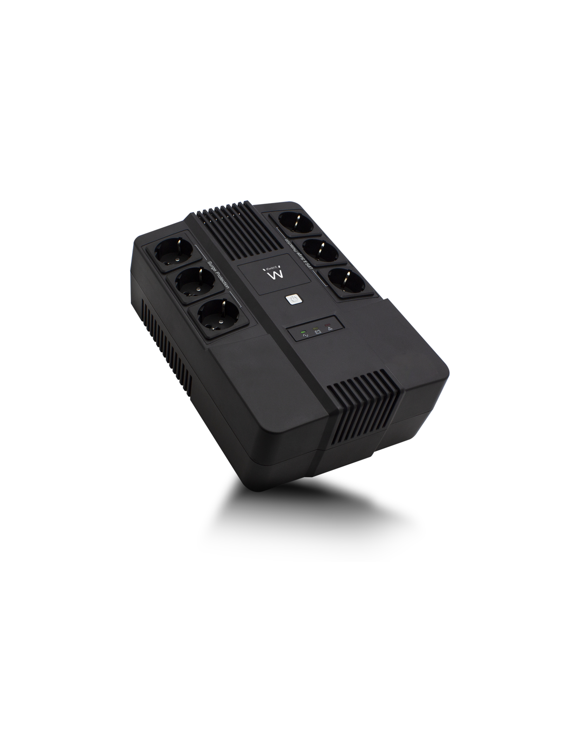Proteja su PC y archivos valiosos contra fallas de alimentación y sobretensiones con el SAI Línea Interactiva de 600 VA EW3945 con AVR y protección contra sobretensiones. El SAI está equipado con 6 tomas de salida. El SAI le notifica con una alarma sonora y una notificación de LED durante un corte de alimentación. Le proporciona aproximadamente 10 minutos adicionales de carga de 120 W para guardar sus archivos y apagar su PC de manera segura. El EW3945 le protege frente a sobretensiones, cortocircuitos, descargas, excesos de carga y sobrecargas. El SAI se puede montar en la pared.