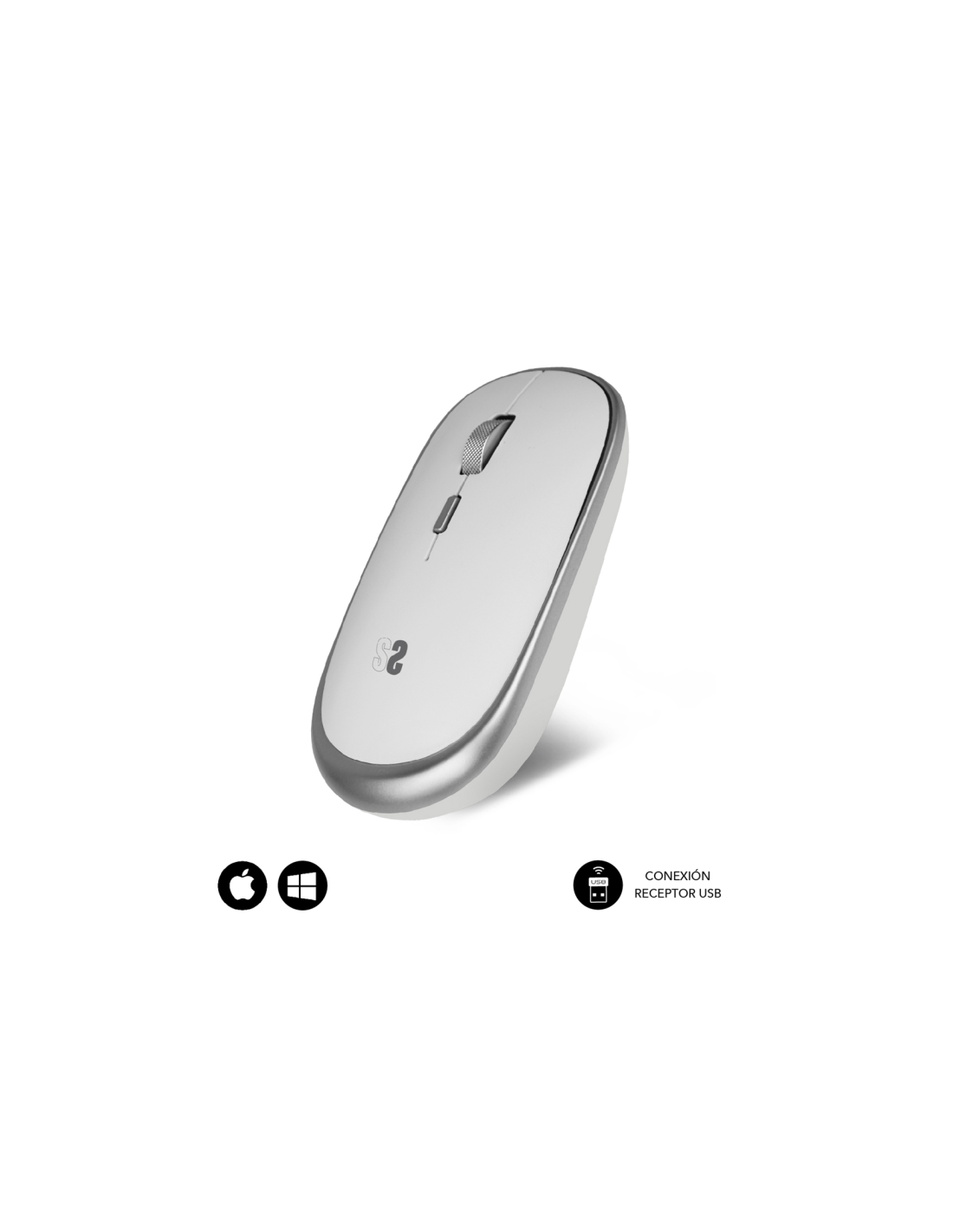 SUBBLIM Ratón Inalámbrico Mini Wireless Mini Mouse Silver. Factor de forma: Ambidextro. Tecnología de detección de movimientos: Óptico, Interfaz del dispositivo: RF inalámbrico, Resolución de movimiento: 1600 DPI, Tipo de botones: Botones presionados, Cantidad de botones: 4, Tipo de desplazamiento: Rueda. Fuente de energía: Baterías. Color del producto: Plata, Blanco