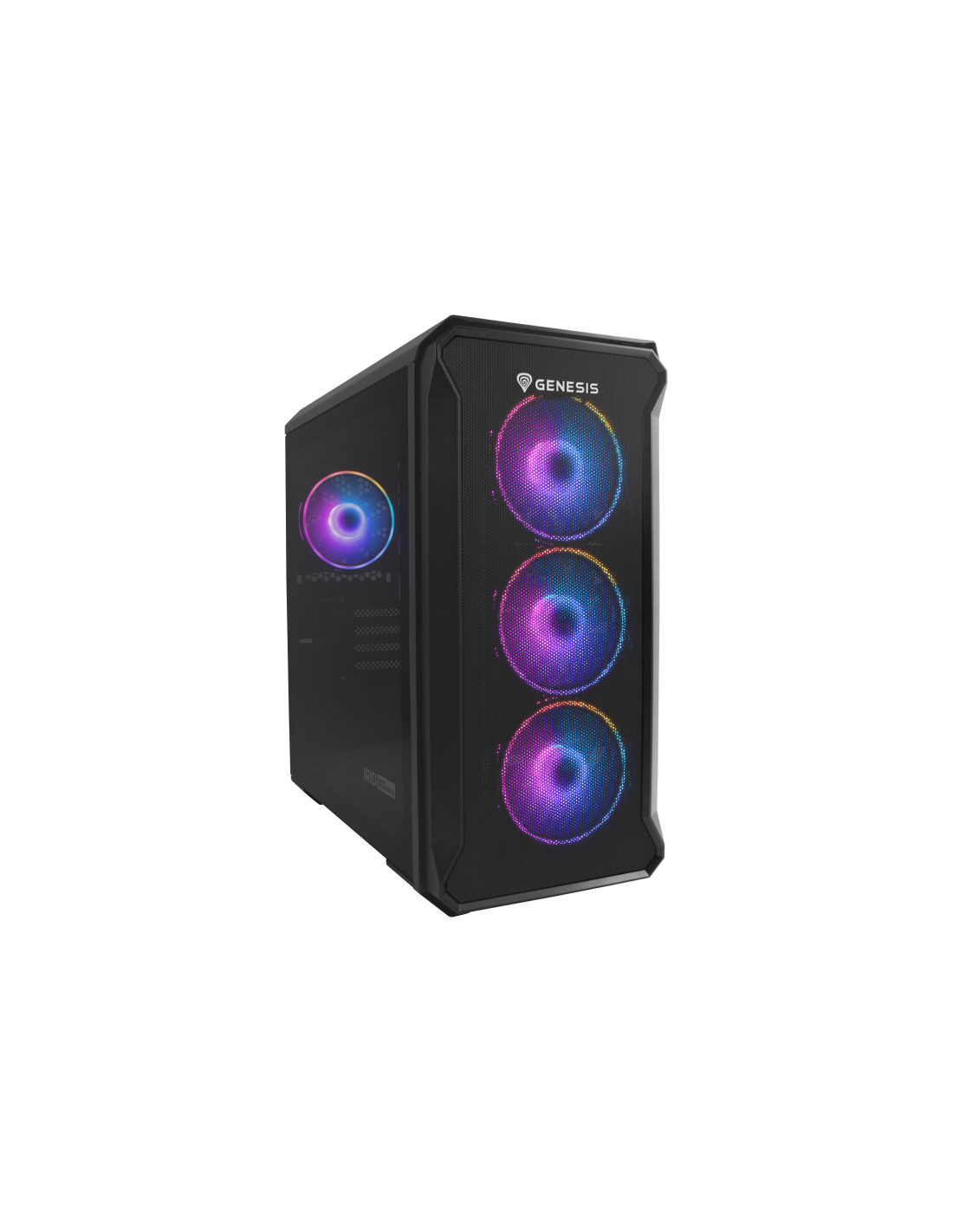 GENESIS Irid 503 ARGB. Factor de forma: Micro Torre, Tipo: PC, Color del producto: Negro, Transparente. Ubicación de fuente de alimentación: Fondo. Ventiladores frontales instalados: 3x 120 mm, Diámetro de ventiladores frontales soportados: 120,140 mm, Ventiladores traseros instalados: 1x 120 mm. Tamaños de disco duro soportados: 2.5,3.5". Ancho: 210 mm, Profundidad: 430 mm, Altura: 430 mm
