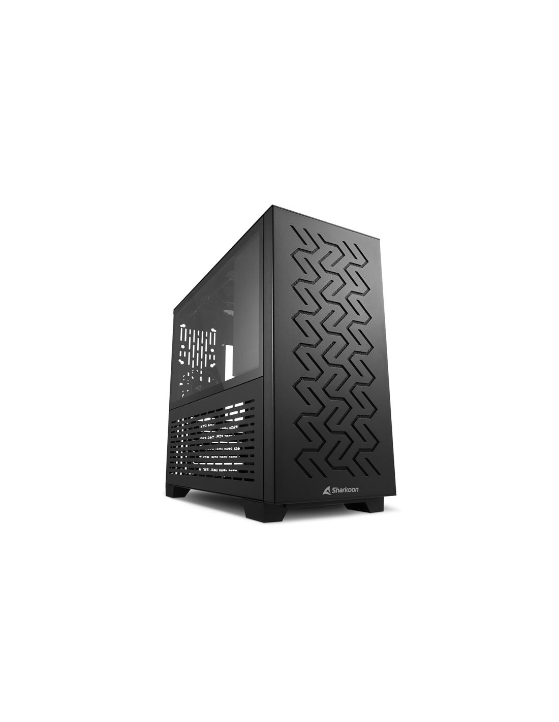 Con la MS-Z1000, Sharkoon presenta una caja micro-ATX que combina un diseño elegante con una funcionalidad inteligente. Su panel frontal de acero no solo tiene un aspecto único, sino que proporciona una permeabilidad del aire óptima para refrigerar los componentes más grandes y de alto rendimiento. El cristal templado del panel lateral puede posicionarse junto al espacio de la fuente de alimentación, el cual se encuentra en la parte superior de la caja. De forma alternativa, se puede colocar el cristal templado en la parte inferior para distribuir de forma más conveniente los componentes seleccionados.