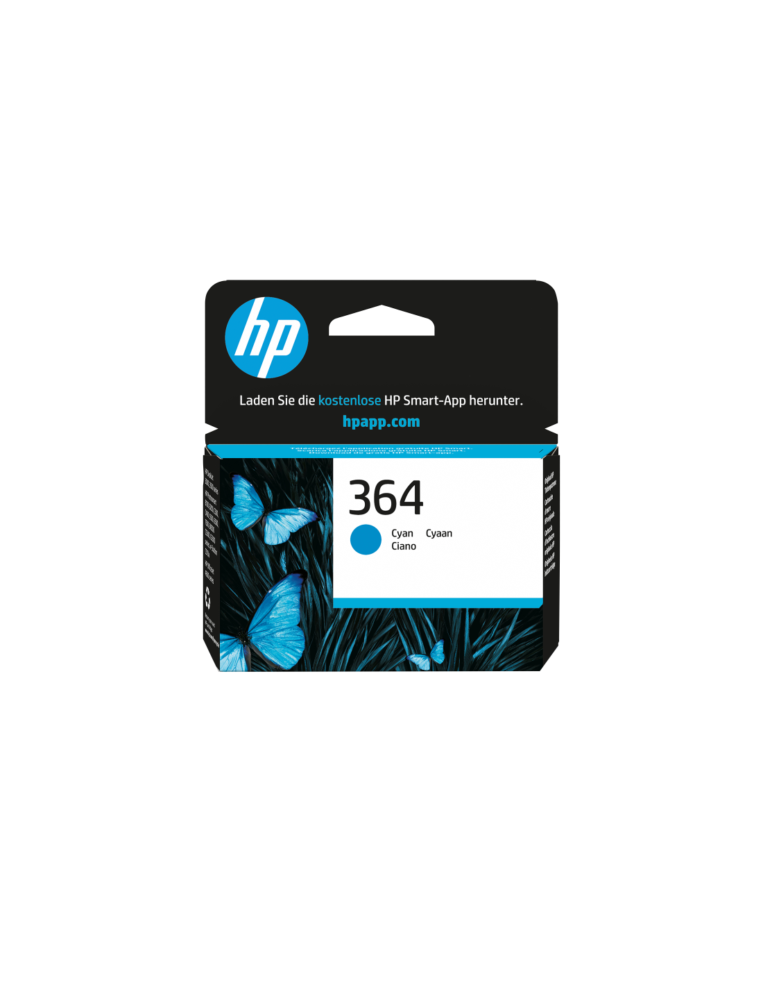 HP Cartucho de tinta original 364 cian. Tipo de tinta de color: Tinta a base de colorante, Tipo de cartucho de tinta: Rendimiento estándar, Rendimiento de impresión de página con tinta de color: 300 páginas, Colores de impresión: Cian, Cantidad por paquete: 1 pieza(s)