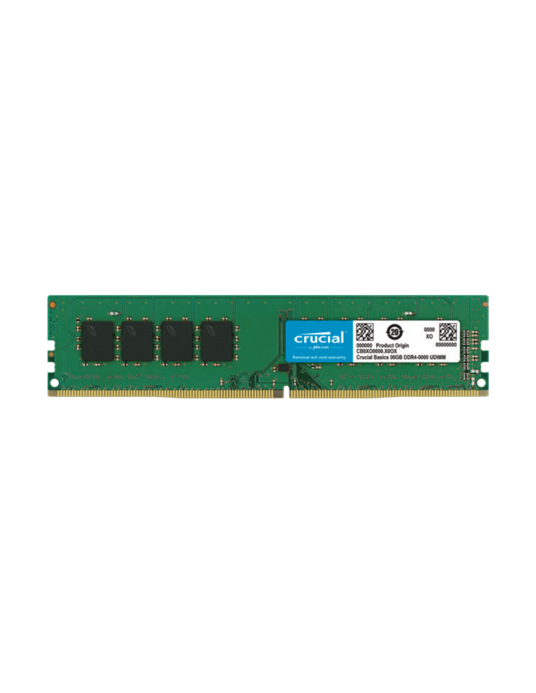 Crucial CB8GU3200. Componente para: PC/servidor, Memoria interna: 4 GB, Diseño de memoria (módulos x tamaño): 1 x 4 GB, Tipo de memoria interna: DDR4, Forma de factor de memoria: 288-pin DIMM, Latencia CAS: 22