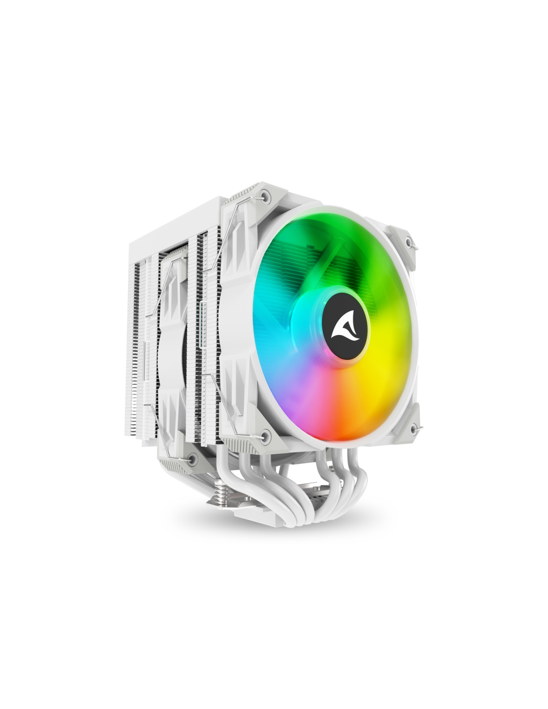 Sharkoon A60 RGB. Tipo: Refrigerador de aire, Diámetro de ventilador: 12 cm, Velocidad de rotación (mín.): 500 RPM, Velocidad de rotación (máx.): 1800 RPM, flujo de aire: 121,55 m³/h, Presión máxima de aire: 2,9 mmH2O, Tipo de soporte: Rodamiento dinámico fluido (FDB). Ancho: 125 mm, Profundidad: 120 mm, Altura: 159 mm. Color del producto: Blanco