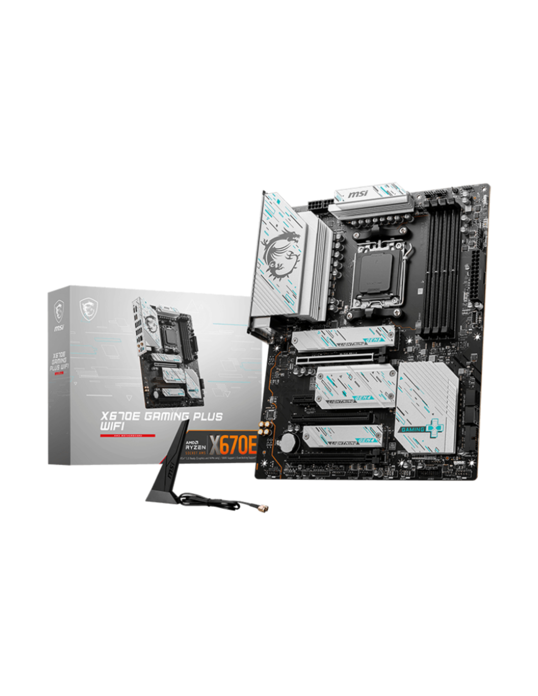 MSI X670E GAMING PLUS WIFI. Fabricante de procesador: AMD, Socket de procesador: Zócalo AM5. tipos de memoria compatibles: DDR5-SDRAM, Memoria interna máxima: 192 GB, Tipo de ranuras de memoria: DIMM. Interfaces de disco de almacenamiento soportados: M.2, SATA III, Niveles RAID: 0, 1, 10. Tipo de interfaz ethernet: 2.5 Gigabit Ethernet, Controlador LAN: Realtek RTL8125-BG, Estándar Wi-Fi: Wi-Fi 6E (802.11ax). Componente para: PC, Factor de forma: ATX, Familia del chipset: AMD