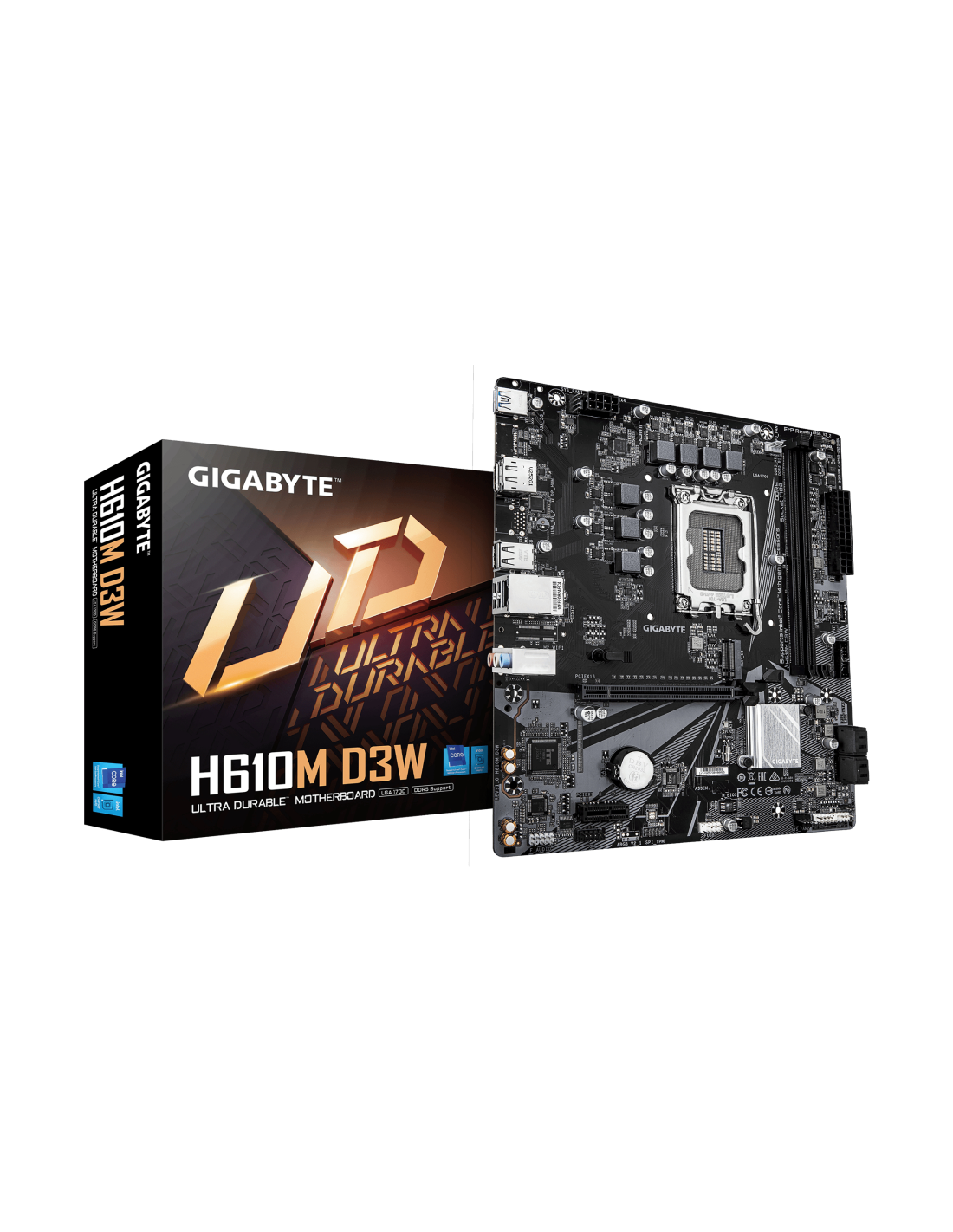 GIGABYTE H610M D3W Placa Base - Compatible con procesadores Intel Core de 14ª generación, VRM de 5+1+1 fases, hasta 5600MHz DDR5