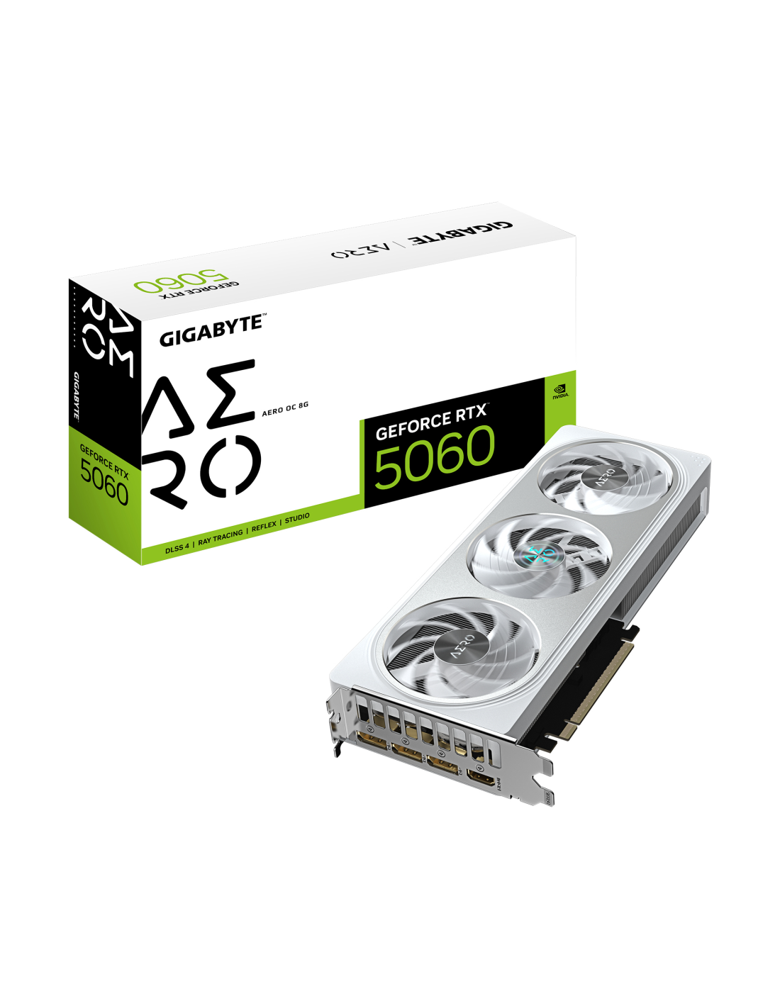 GIGABYTE GeForce RTX 5060 AERO OC 8G Tarjeta Gráfica - 8GB GDDR7, 128bit, PCI-E 5.0, 2595 MHz Frecuencia del núcleo, 3 x DisplayPort, 1 x HDMI, GV-N5060AERO OC-8GD. Familia de procesadores de gráficos: NVIDIA, Procesador gráfico: GeForce RTX 5060, Frecuencia del procesador: 2595 MHz. Capacidad memoria de adaptador gráfico: 8 GB, Tipo de memoria de adaptador gráfico: GDDR7, Ancho de datos: 128 bit, Velocidad de memoria del reloj: 28000 MHz. Máxima resolución: 7680 x 4320 Pixeles. Versión DirectX: 12.0, Versi