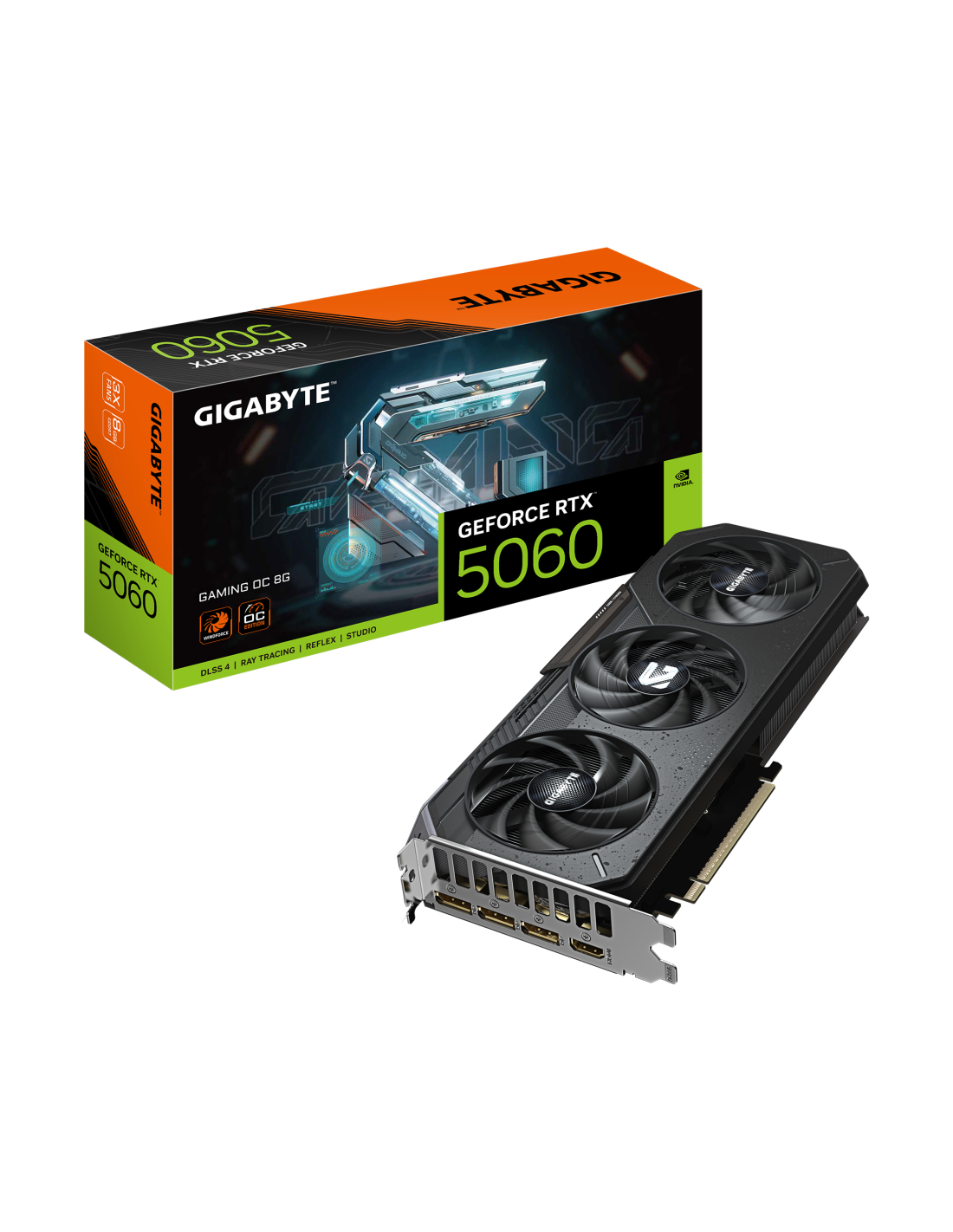 GIGABYTE GeForce RTX 5060 GAMING OC 8G Tarjeta Gráfica - 8GB GDDR7, 128bit, PCI-E 5.0, 2595 MHz Frecuencia del núcleo, 3 x DisplayPort, 1 x HDMI, GV-N5060GAMING OC-8GD. Familia de procesadores de gráficos: NVIDIA, Procesador gráfico: GeForce RTX 5060, Frecuencia del procesador: 2595 MHz. Capacidad memoria de adaptador gráfico: 8 GB, Tipo de memoria de adaptador gráfico: GDDR7, Ancho de datos: 128 bit, Velocidad de memoria del reloj: 28000 MHz. Máxima resolución: 7680 x 4320 Pixeles. Versión DirectX: 12.0, V