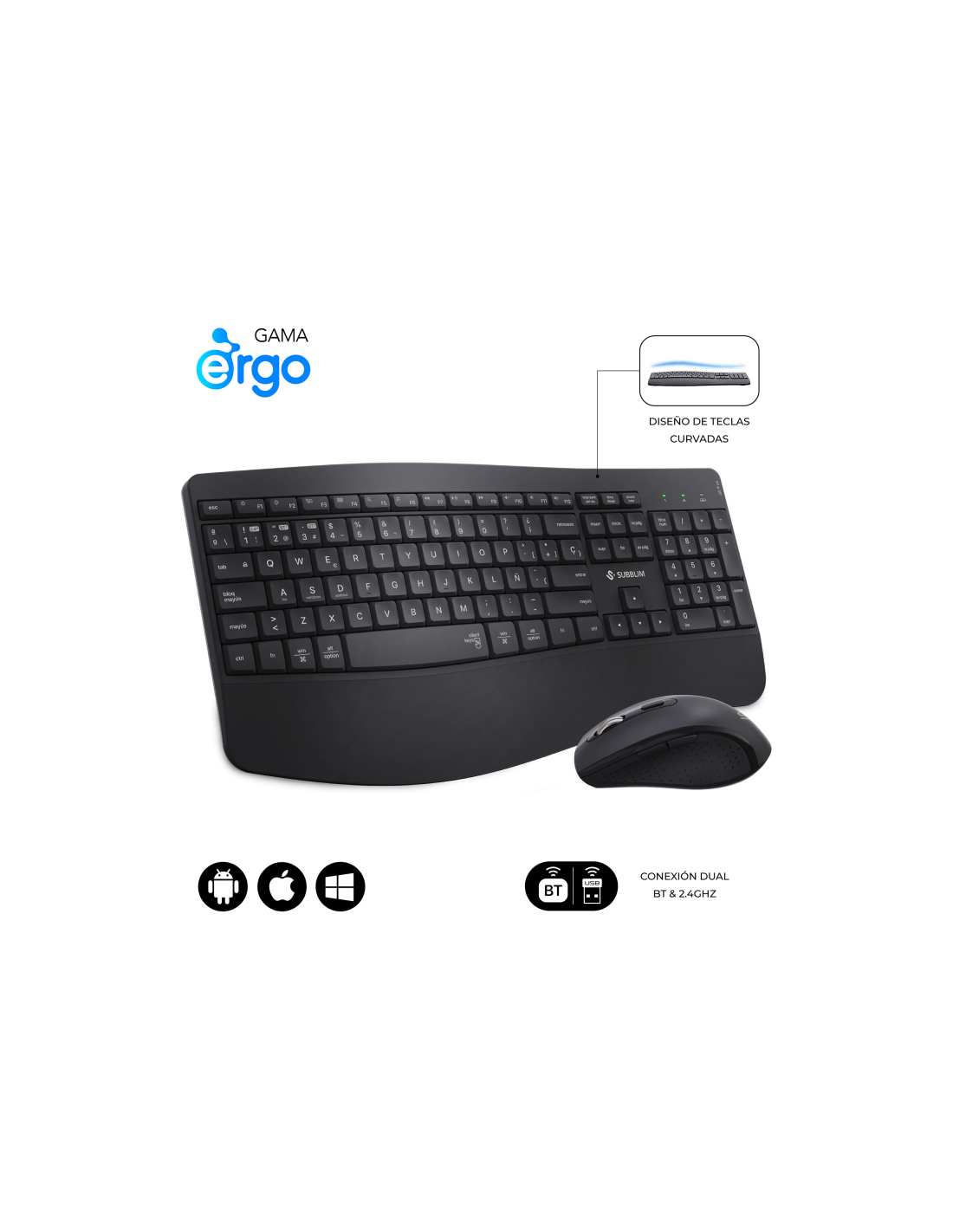 Descubre la experiencia definitiva en ergonomía y usabilidad con el Combo Dual Prowave de SUBBLIM, un pack de teclado y ratón ergonómicos que cuidan tu salud postural y multiplican tu productividad. Diseñado para quienes pasan largas horas frente al ordenador, te ayuda a mantener una postura más cómoda y natural, reduciendo la fatiga en las muñecas a la vez que mejora la precisión en tus tareas diarias. Gracias a su conectividad avanzada, su diseño inteligente y sus múltiples prestaciones, disfrutarás de un entorno de trabajo o de ocio sumamente eficiente, silencioso y adaptable a cualquier espacio. Con el Combo Dual Prowave, SUBBLIM pone al alcance de tu mano la perfecta combinación de confort, rendimiento y versatilidad, para que disfrutes de una jornada más relajada y productiva.