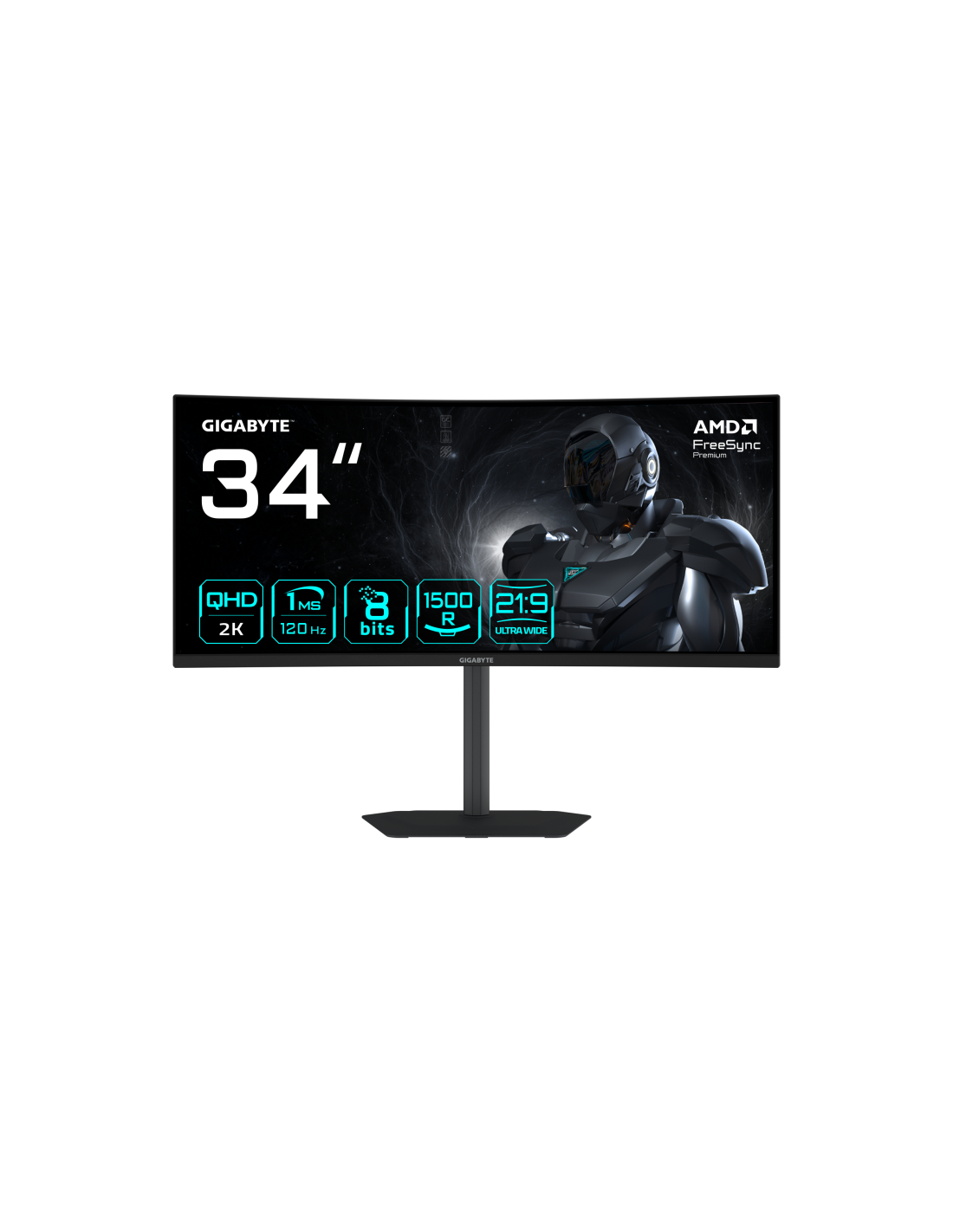 GIGABYTE GS34WQCA Monitor Gaming Curvo 34" WQHD – 3440 x 1440, 1500R, 120Hz, 1ms, 300 cd/m², FreeSync Premium, HDR Ready, HDMI 2