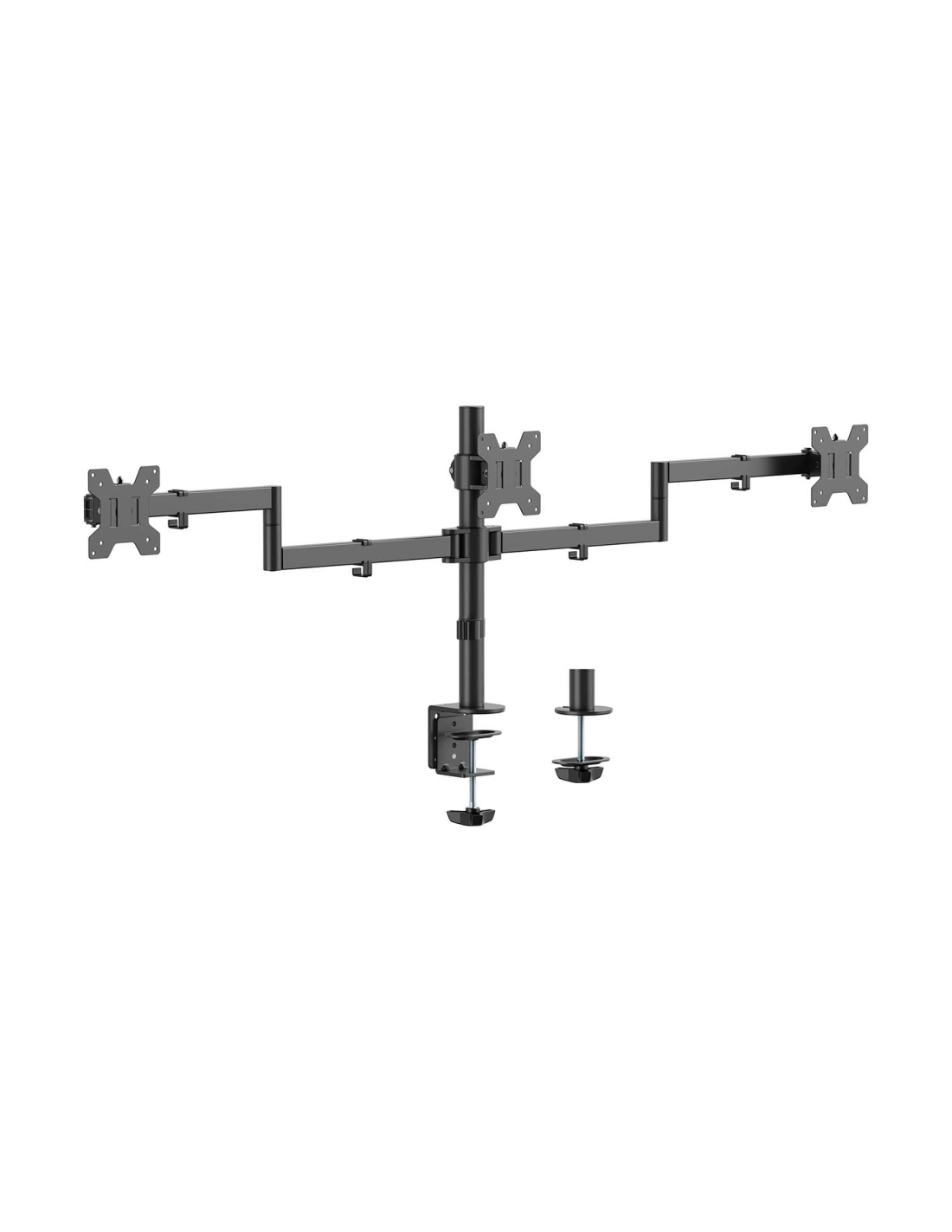 AISENS - Soporte de mesa eco giratorio e inclinable para 3 monitores 10kg (3 Pivotes, 2 Brazos) de 13-27, Negro