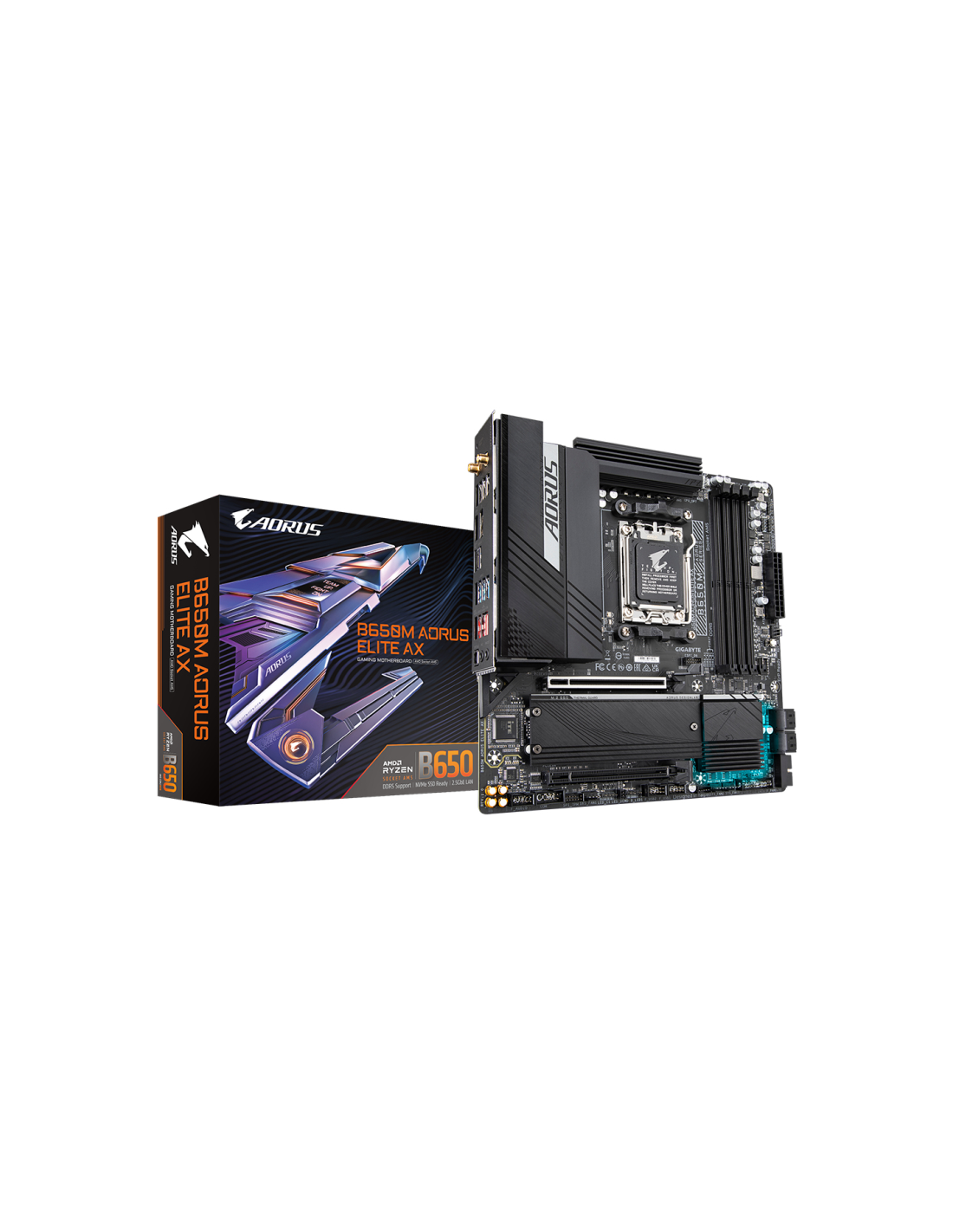 GIGABYTE B650M AORUS ELITE AX Placa base - AMD Ryzen serie 9000, VRM de 12+2+1 fases, hasta 8000 MHz DDR5 (OC), 1xPCIe 5.0 + 1xP