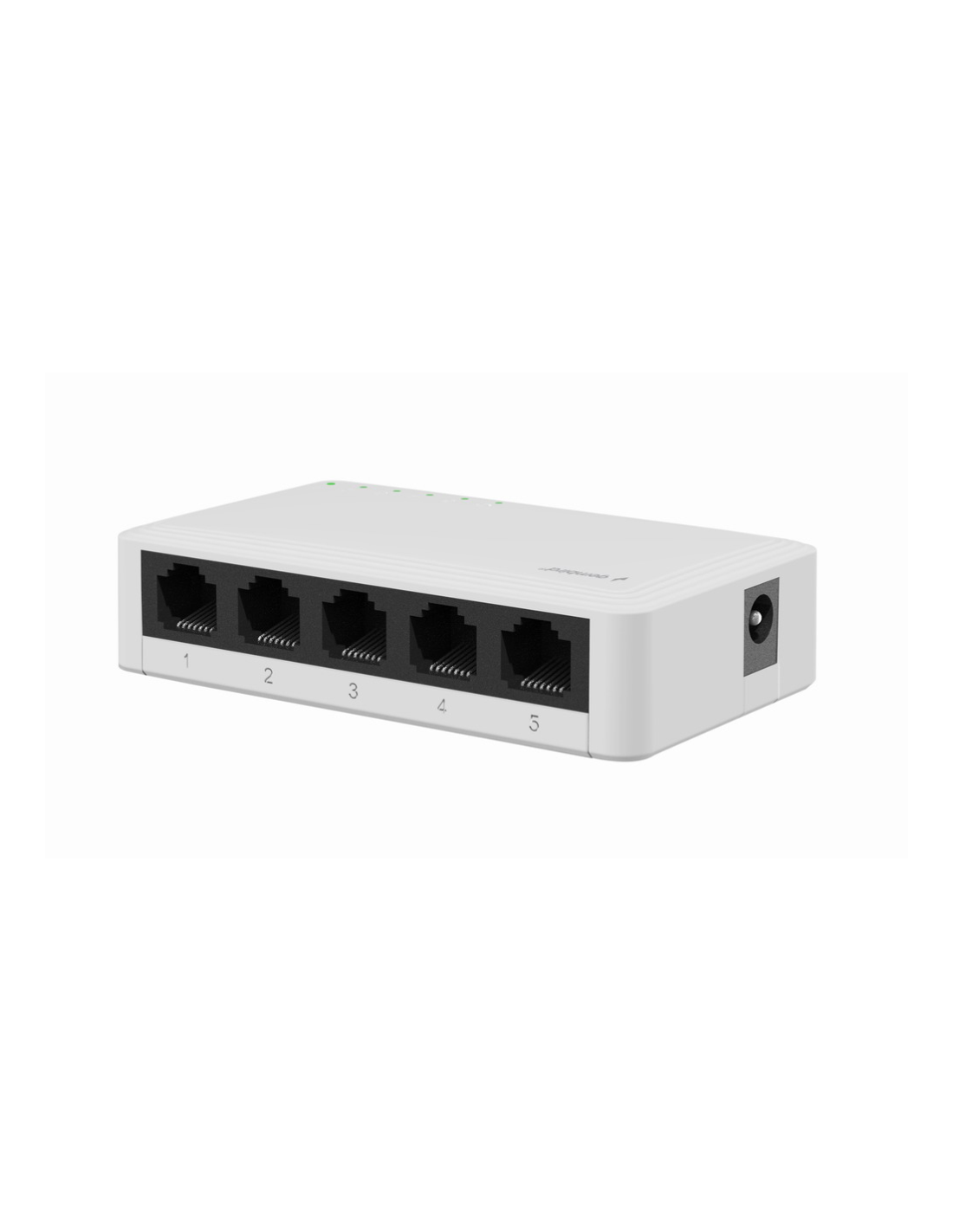 Switch Gigabit LAN de 5 puertos Proporciona cinco puertos 10/100/1000 Mbps Ethernet (conector RJ45) Todos los puertos soportan modos half / full dúplex y auto-negociación Todos los puertos soportan la función Auto-MDI/MDI-X Adaptador de corriente incluido
