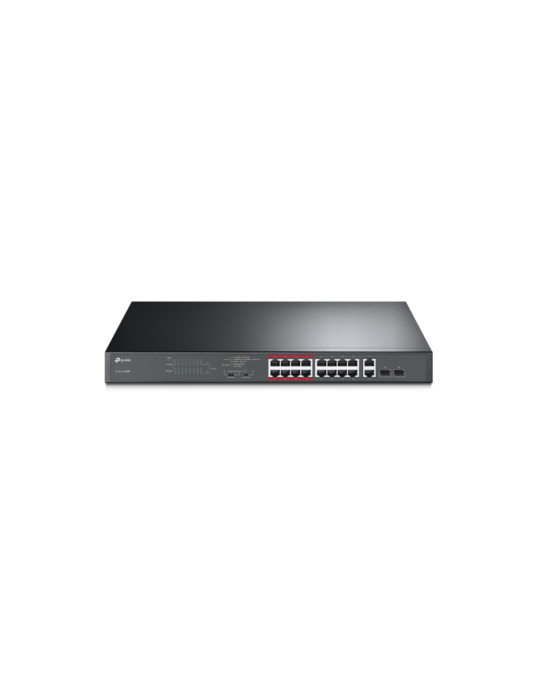 TL-SL1218MP cumple con el estándar 802.3af/at PoE+, soportando hasta 30W de potencia suministrada en cada puerto PoE. La capacidad total PoE es de 192W para 16 puertos, siendo la elección ideal para negocios pequeños y medianos con sistemas de vigiláncia.