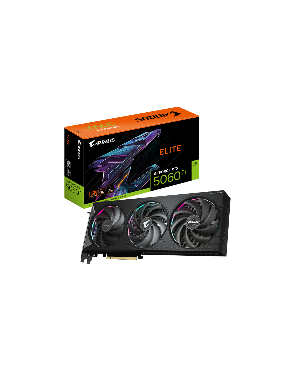 GIGABYTE AORUS GeForce RTX 5060 Ti ELITE 16G Tarjeta Gráfica – 16 GB GDDR7, 128 bits, PCI-E 5.0, 2722 MHz Frecuencia del núcleo,