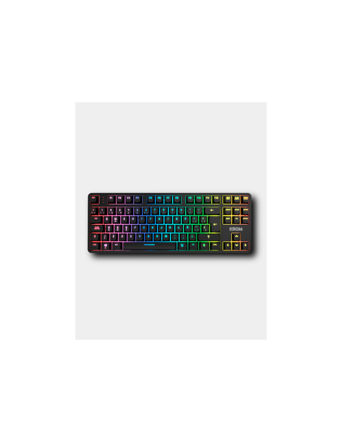 Krom NXKROMKERNELPROSP. Formato del teclado: Tenkeyless (sin zona numérica) (80 - 87%). Estilo de teclado: Derecho. Tecnología de conectividad: Inalámbrico y alámbrico, Interfaz del dispositivo: USB + RF Wireless + Bluetooth, Interruptor del teclado: Interruptor mecánico, Diseño de teclado: QWERTY, Teclado, cantidad de teclas: 87. Tipo de retroiluminación: LED RGB. Longitud de cable: 1,8 m. Uso recomendado: Juego. Color del producto: Negro, Blanco