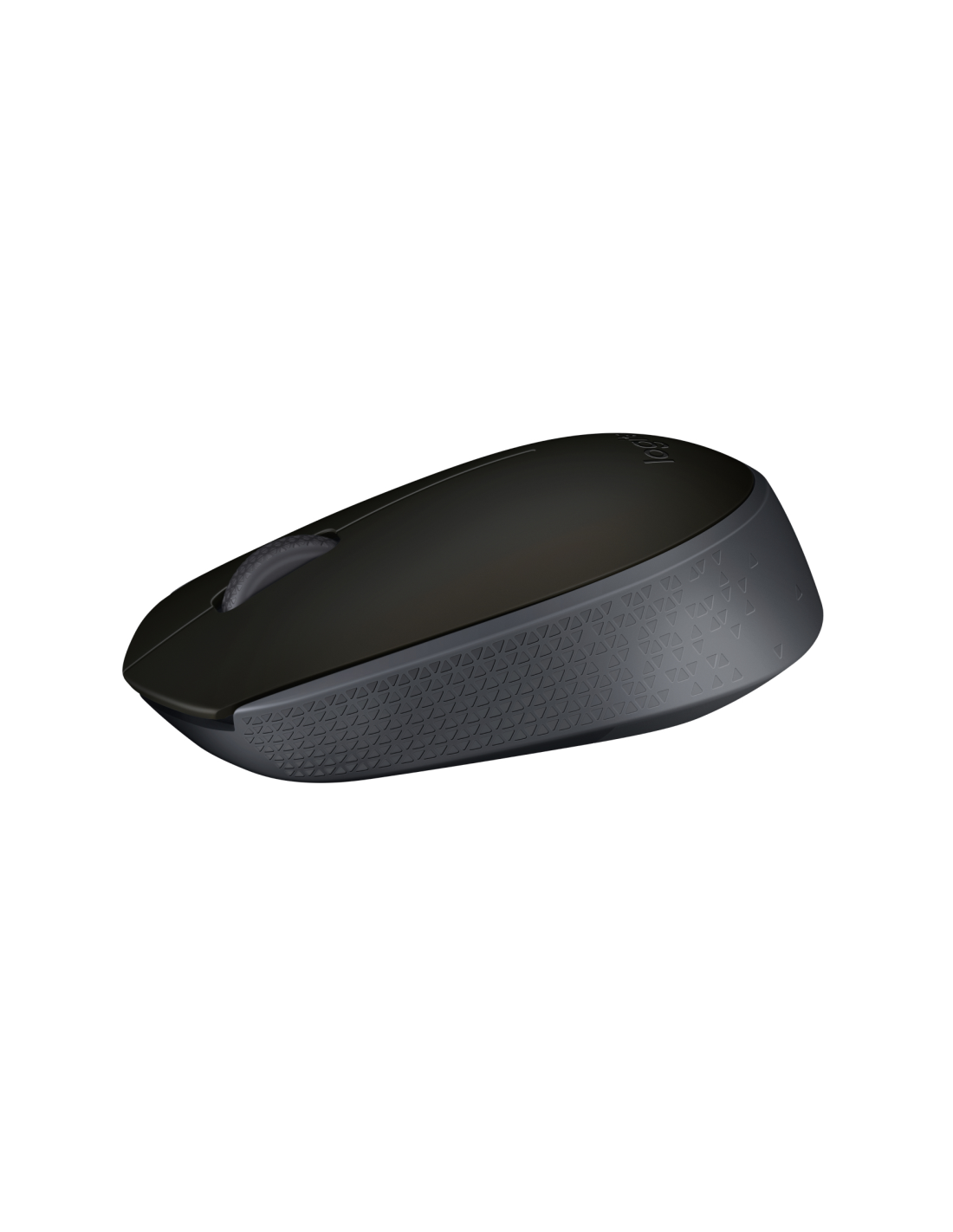 Logitech M171. Factor de forma: Ambidextro. Tecnología de detección de movimientos: Óptico, Interfaz del dispositivo: RF inalámbrico, Resolución de movimiento: 1000 DPI, Tipo de botones: Botones presionados, Cantidad de botones: 2, Tipo de desplazamiento: Rueda. Fuente de energía: Baterías. Color del producto: Negro, Gris