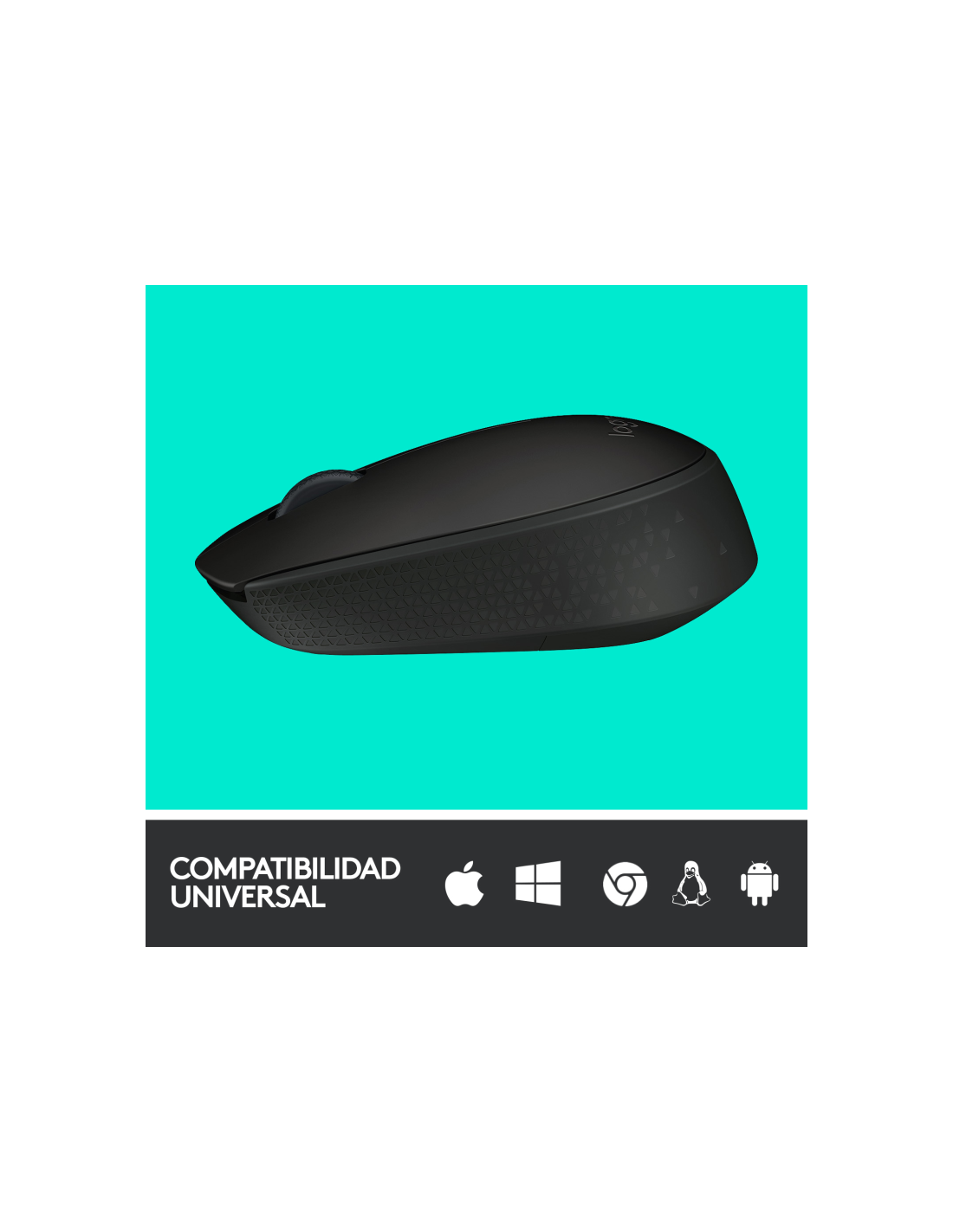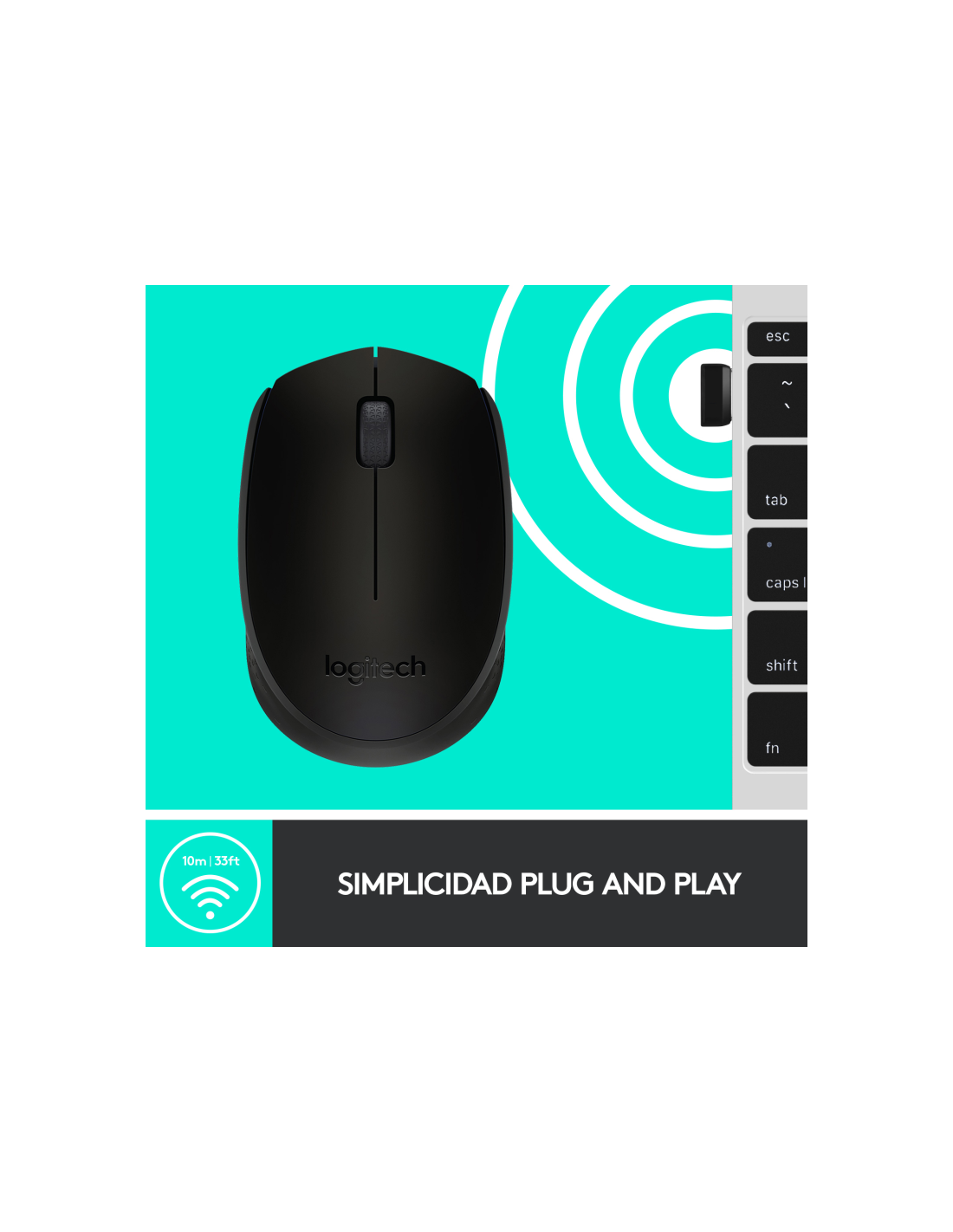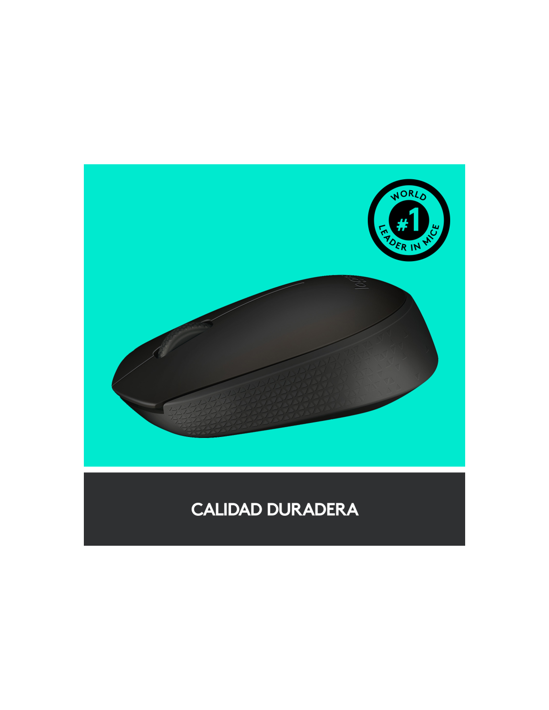 ES EL MOMENTO DE LA TECNOLOGÍA INALÁMBRICA. Con Logitech® B170 Wireless Mouse tienes la fiabilidad de un dispositivo con cable y la comodidad de uno inalámbrico (con un radio de acción de 10 metros) gracias a la tecnología inalámbrica avanzada de 2,4 GHz de Logitech. Este ratón asequible y sin complicaciones tiene una pila que dura hasta 12 meses con una sola pila AA y es compatible con Windows®, Mac y Chrome™.