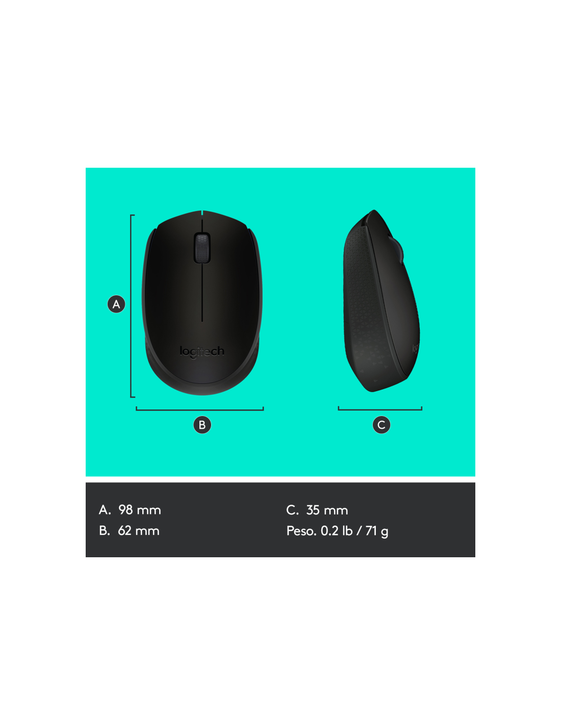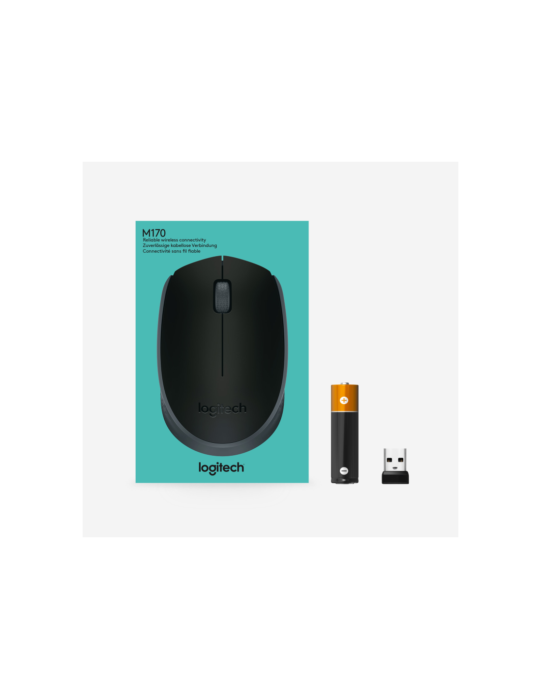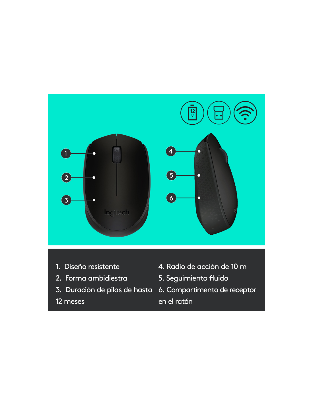 ES EL MOMENTO DE LA TECNOLOGÍA INALÁMBRICA. Con Logitech® B170 Wireless Mouse tienes la fiabilidad de un dispositivo con cable y la comodidad de uno inalámbrico (con un radio de acción de 10 metros) gracias a la tecnología inalámbrica avanzada de 2,4 GHz de Logitech. Este ratón asequible y sin complicaciones tiene una pila que dura hasta 12 meses con una sola pila AA y es compatible con Windows®, Mac y Chrome™.